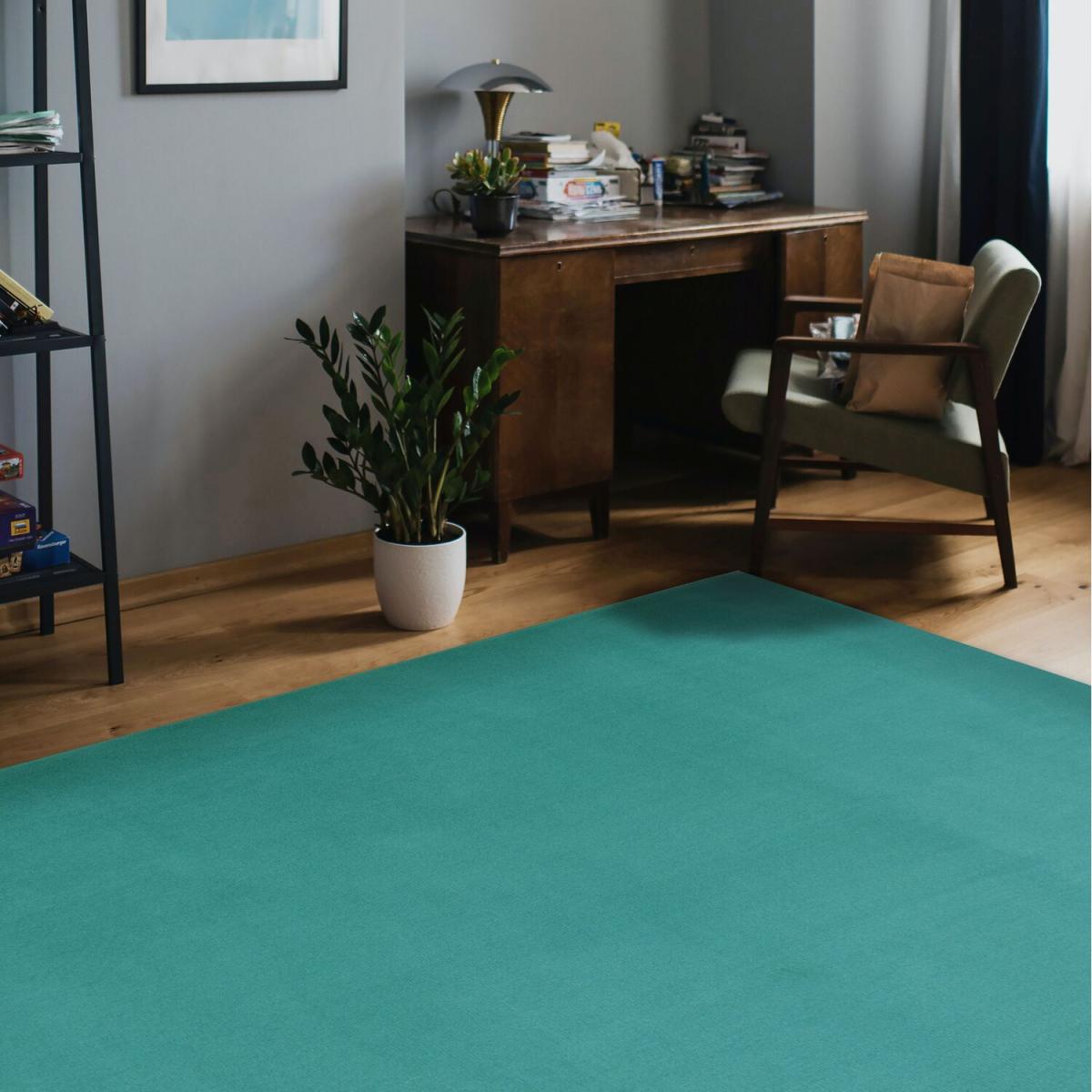 Modern Torquoise Blue Solid Flatweave Living Room Rug - Islay - Blue