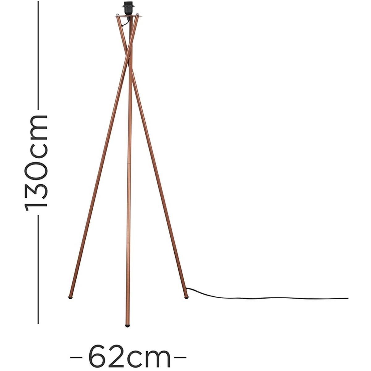 Tripod floor lamp base in a copper effect metal finish, and features an in-line onoff foot switch for easy use. Lamp base only - pair with a shade of your choice to suit your own decor. Floor lamps are a great way to bring additional lighting to a room. Ideal for lounges, hallways, bedrooms and other areas around the home.