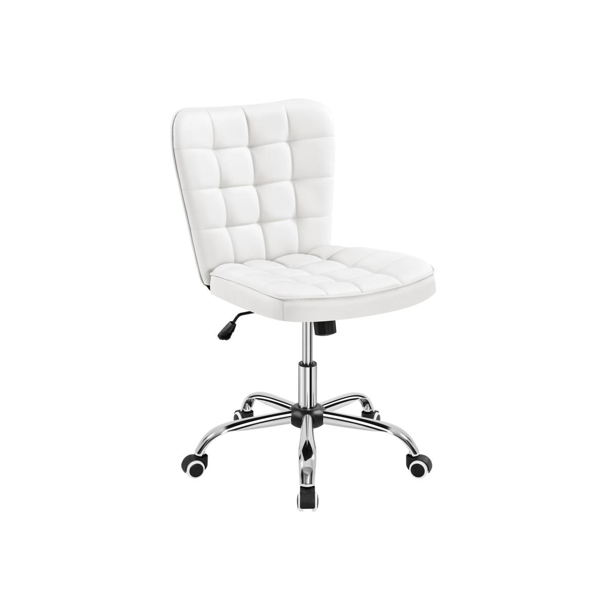 The considerate armless design has more flexibility to be compatible with your particular desk, so that you do not have to worry about extra measurements. Premium faux leather cover is both water-resistant and long-wearing. High-density foam is soft but firm at the same time, featuring deformation-resistant. The rocking function allows you to rock back and forth during breaks. A 360 degree smooth mobility lets you move easily from task to task. modern and minimalist appearance makes this armless office chair fit in various places such as home offices, conference rooms, meeting areas, study rooms, dressing rooms and more.