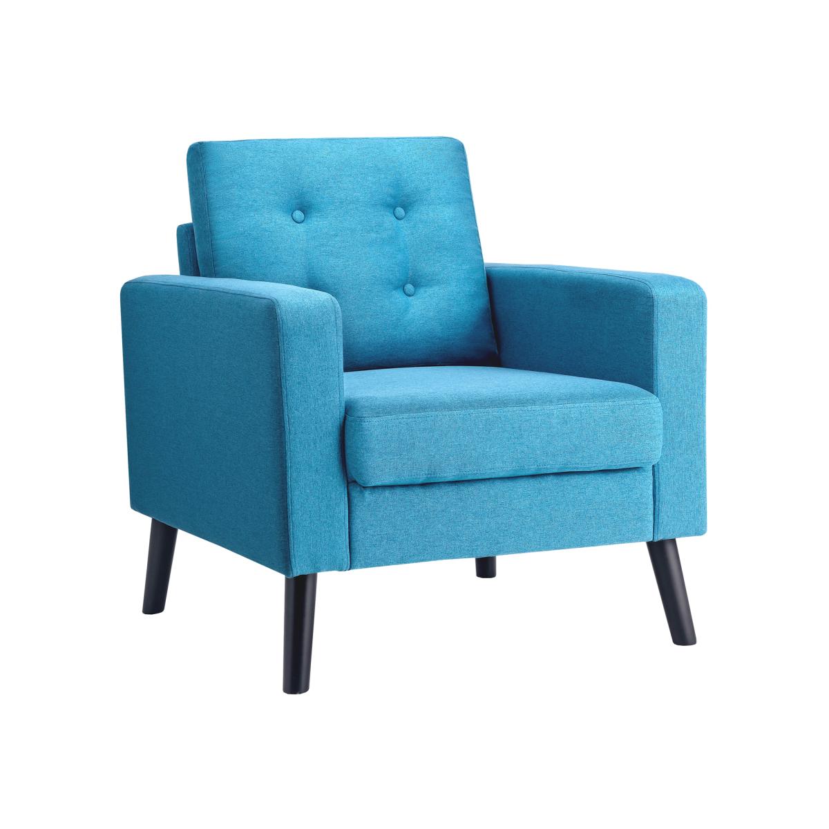 Would you like to have a more comfortable rest in a chair after a tiring whole day? Our accent chair is an ideal choice to improve your life, becoming the highlight of your living space. Supported by solid rubber wood legs, the armchair ensures good stability and strong bearing strength. Wide backrest and thick seat cushion are padded with highly elastic sponge for optimal softness. Moreover, fine linen cover is breathable and skin-friendly to offer you a comfortable sitting experience. Ergonomic armrest allows you to fully relax your arms. What's more, button-tufted back brings a elegant and noble look to your home. It is just what you need for your living room to receive your friends!
