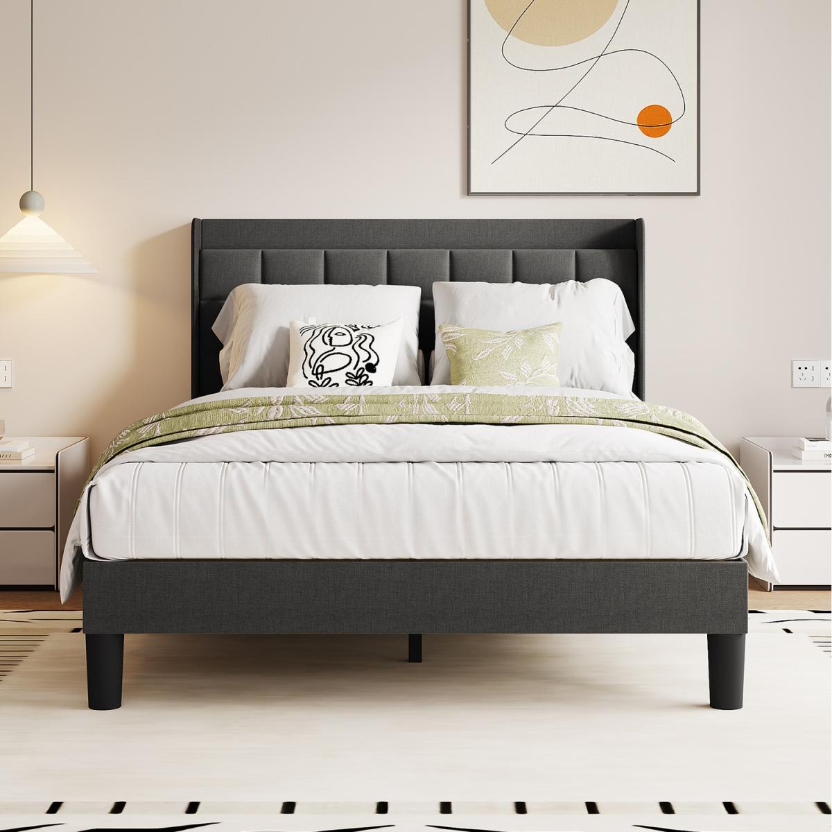 Introducing the Modern Upholstered Platform Bed Frame, designed to be the centrepiece of your dream bedroom. This queen-size bed frame boasts a tufted headboard and is upholstered in a sophisticated dark grey fabric, blending seamlessly with contemporary and traditional decor styles. The platform construction eliminates the need for a box spring, offering a streamlined look and saving you both money and space. Crafted with high-quality materials, this bed frame ensures durability and stability, providing a solid foundation for your mattress. The sturdy wooden slats support even weight distribution, enhancing comfort and extending the life of your mattress. Ideal for those seeking a reliable and stylish bed frame, it is also incredibly easy to assemble, coming with clear instructions and all necessary tools included. The versatile design makes it compatible with a wide range of mattress sizes and styles, allowing you to customise your sleeping experience. Whether you prefer memory foam, latex, or innerspring mattresses, this bed frame accommodates them all. Perfect for bedrooms of all styles, from minimalist to cosy, this bed frame is not just a piece of furniture but a statement of refined taste. Invest in the Modern Upholstered Platform Bed Frame and elevate your bedroom to a serene retreat, where style meets comfort. Order now and enjoy a restful night's sleep in a bed that looks as good as it feels.