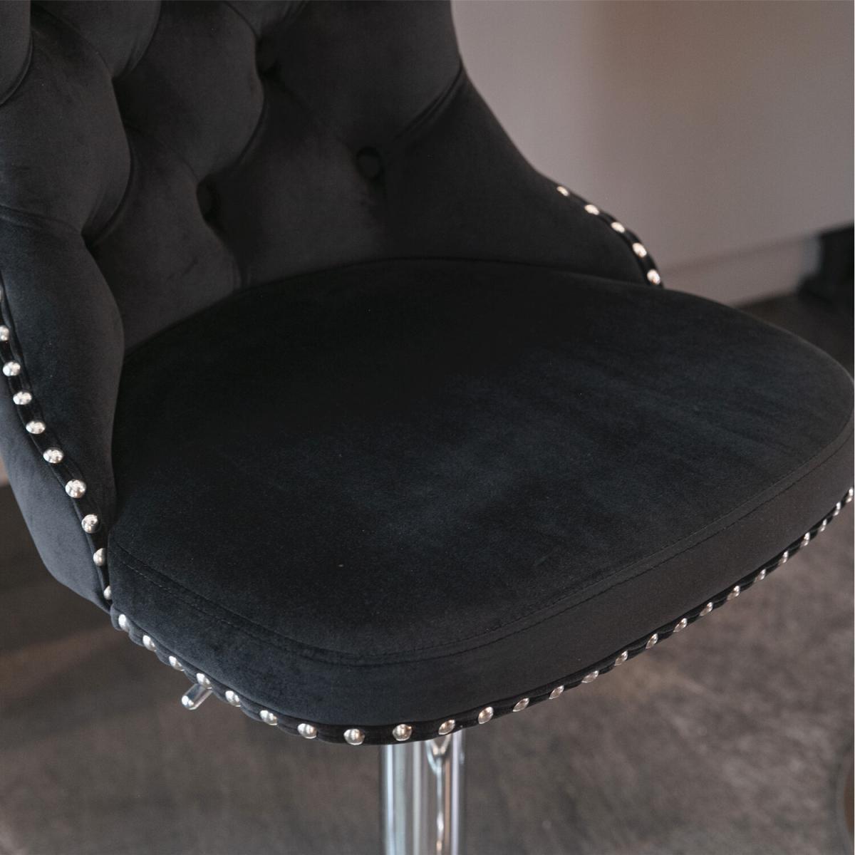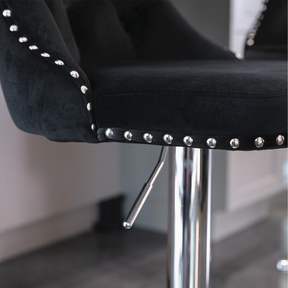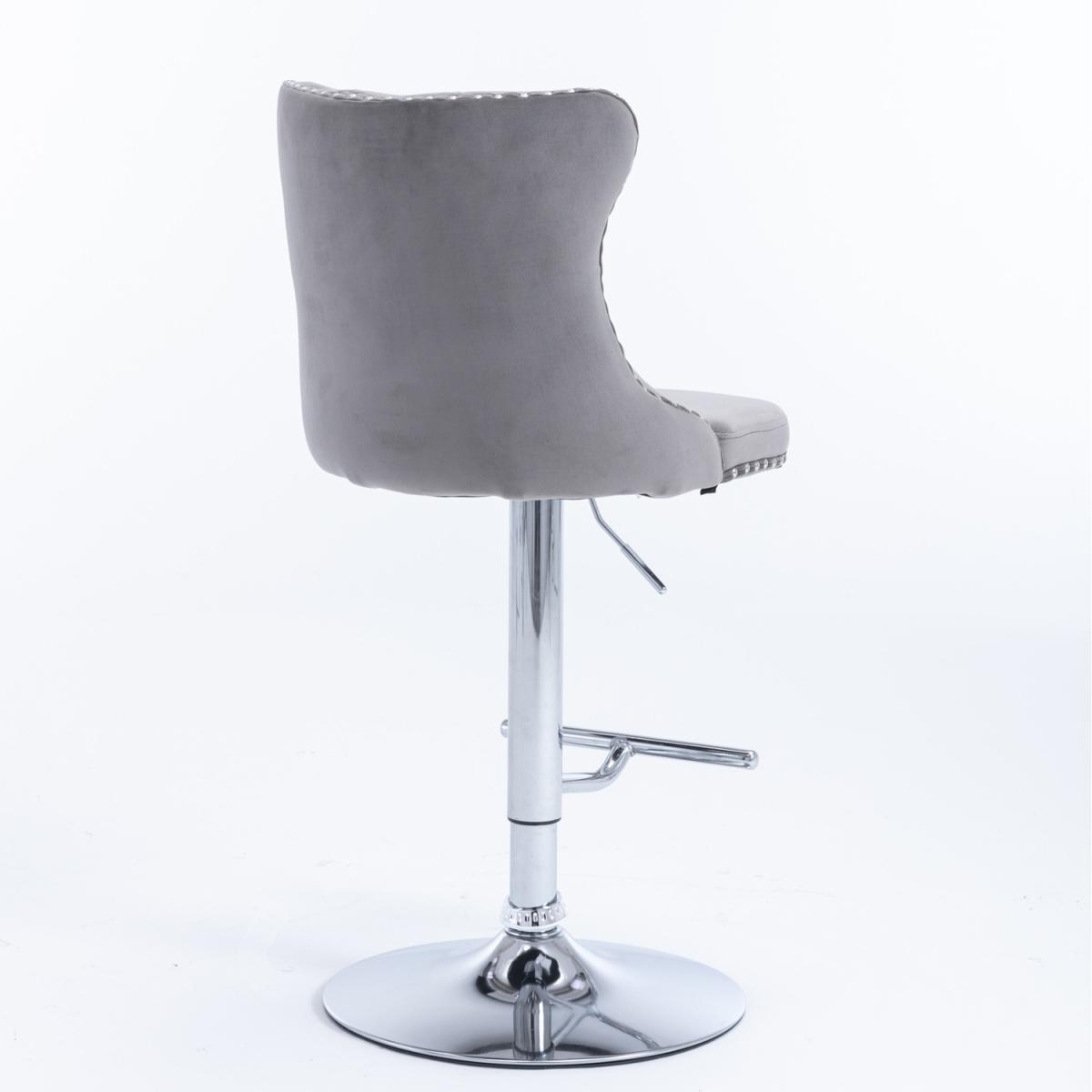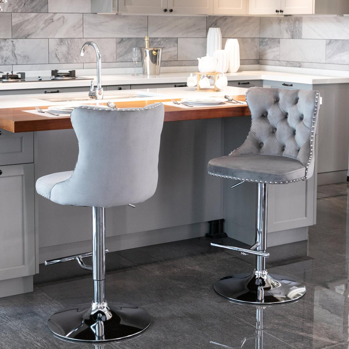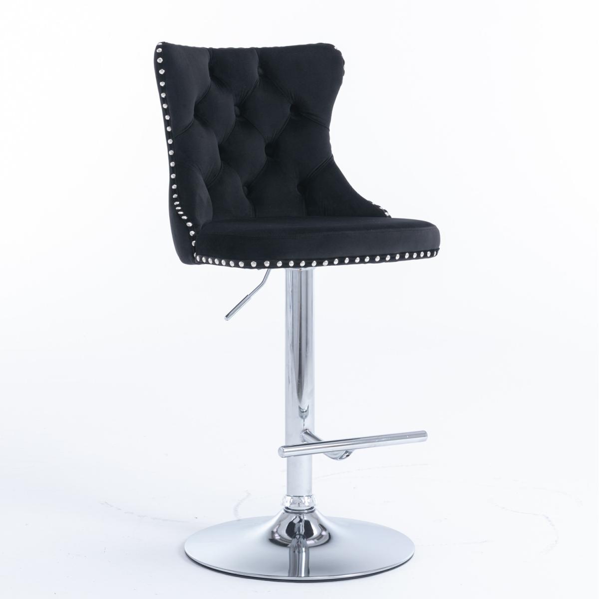 This modern and comfortable Barstool is upholstered in plush thickened velvet with high-density foam and extremely strong support. 360 swivel and adjustable seat height from 63-84cm/24.8-33 inches. Handcrafted decorative nail head trims and button tufted back complete the design with a dash of distinction. Easy to assemble with a brief manual provided.
