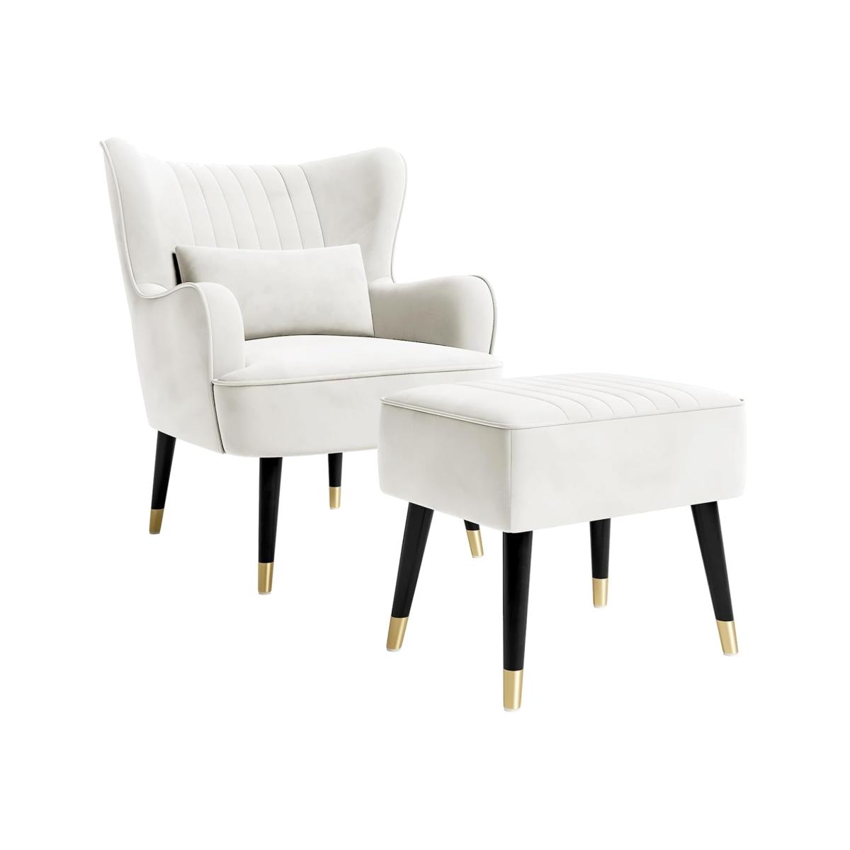 The whole frame of the velvet armchair is made of wooden base and legs. As the backrest and the seat are integral, this occasional chair is sturdy enough and built to last. Furthermore, adjustable anti-skid foot pads could keep this accent chair stable. The load bearing capacity of chair is 180kg, so no worries about its firmness Designed with breathable velvet fabric, a roomy thick upholstered cushion and a lumbar pillow, filled with pocket spring and high density sponge, the living room armchair looks gorgeous and will complement any home decorations, making you feel extremely comfy when you sit or rest on it Thanks to its wide and thick resilient cushion, this occasional chair is perfect for you to relax and unwind after a day's work. Other than that, you may also sit on the lounge chair to chat or read books As it would not take up too much space, this living room armchair can be placed near your sofa in the living room or next to the window in your bedroom or study room, which will be a beautiful addition to your space. It also applies to the leisure area or office rest area. You are sure to feel great when read or rest on the accent chair It is extremely easy for installation, all you need is just to install the legs and then your new leisure chair is ready for use, which makes it a hassle-free addition to any home. Please flip over the cushion and unzip it, you will see the accessories and the manual are inside the seat compartment Velvet Armchair with Footstool and Lumbar Pillow, Modern Wing Back Accent Chair with Ottoman, Large Occasional Chair for Living Room Bedroom Study Room Office(Beige)