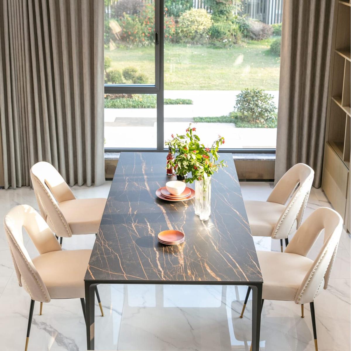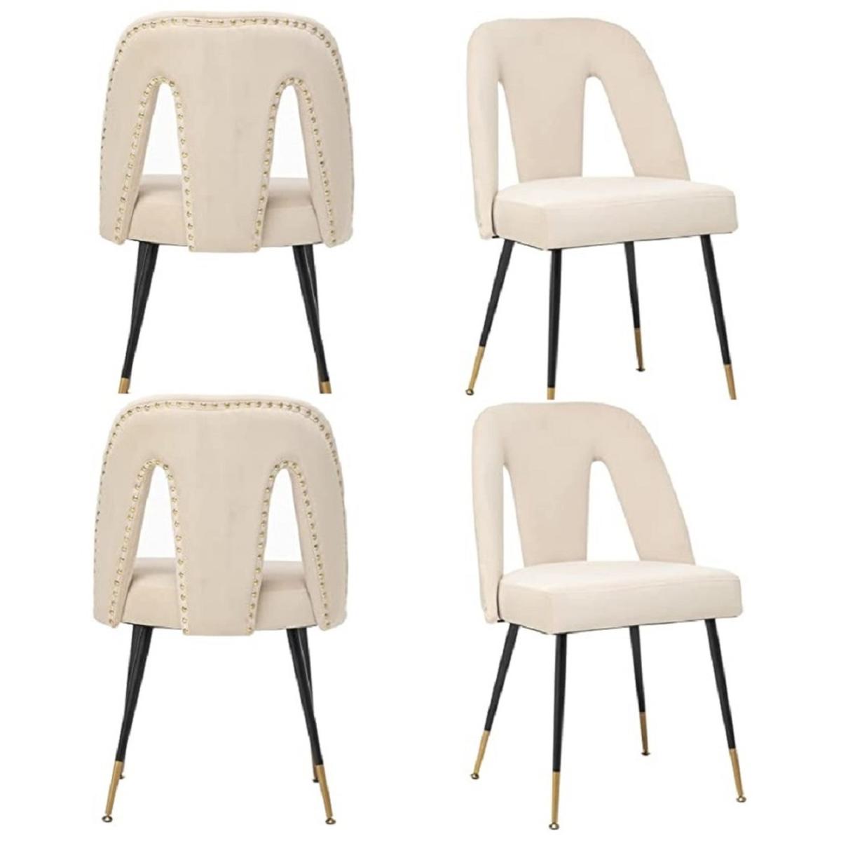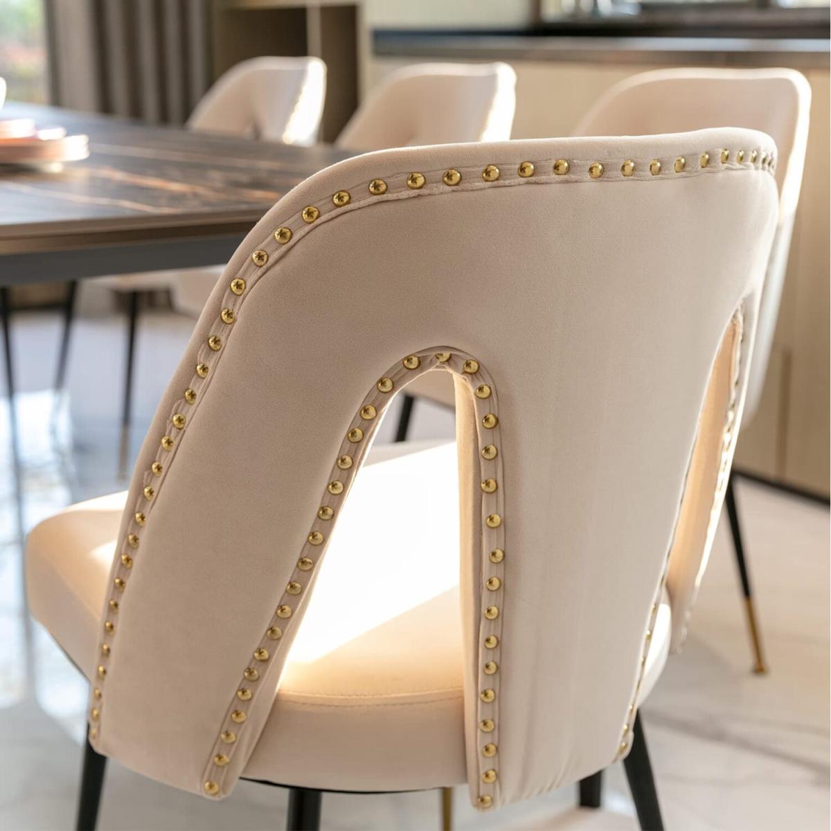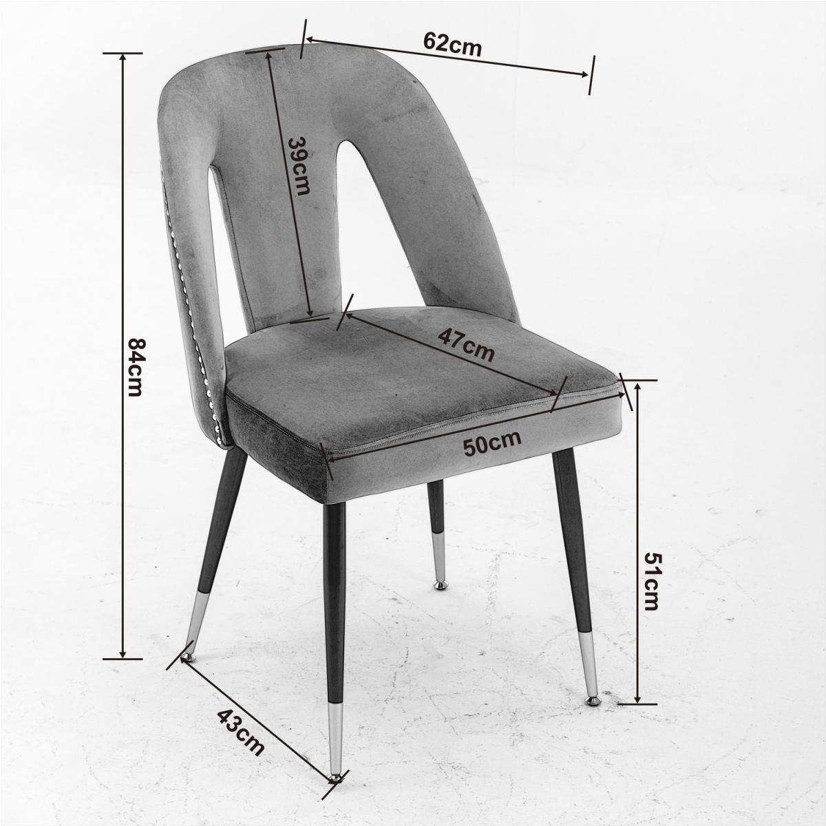 This modern dinning chair features with nail head trim and graceful simple lines on the chair's exterior, finishing in black and gold, this dining chair set will easily enhance your dining space with a classic feel. Upholstered Soft Velvet give luxury look and very delicate to touch. The whole kitchen chair is padded with high density sponge for extreme comfort seating experience. Unique design allows multi - purpose use of the chairs, can be used as dining chairs, living room chairs or even office chairs, restaurants and cafe. The upholstered dining chair is built to last, Extra Strong steel legs for extra stable and durable. Adjustable feet to protect your floors from scratches and scuffs.