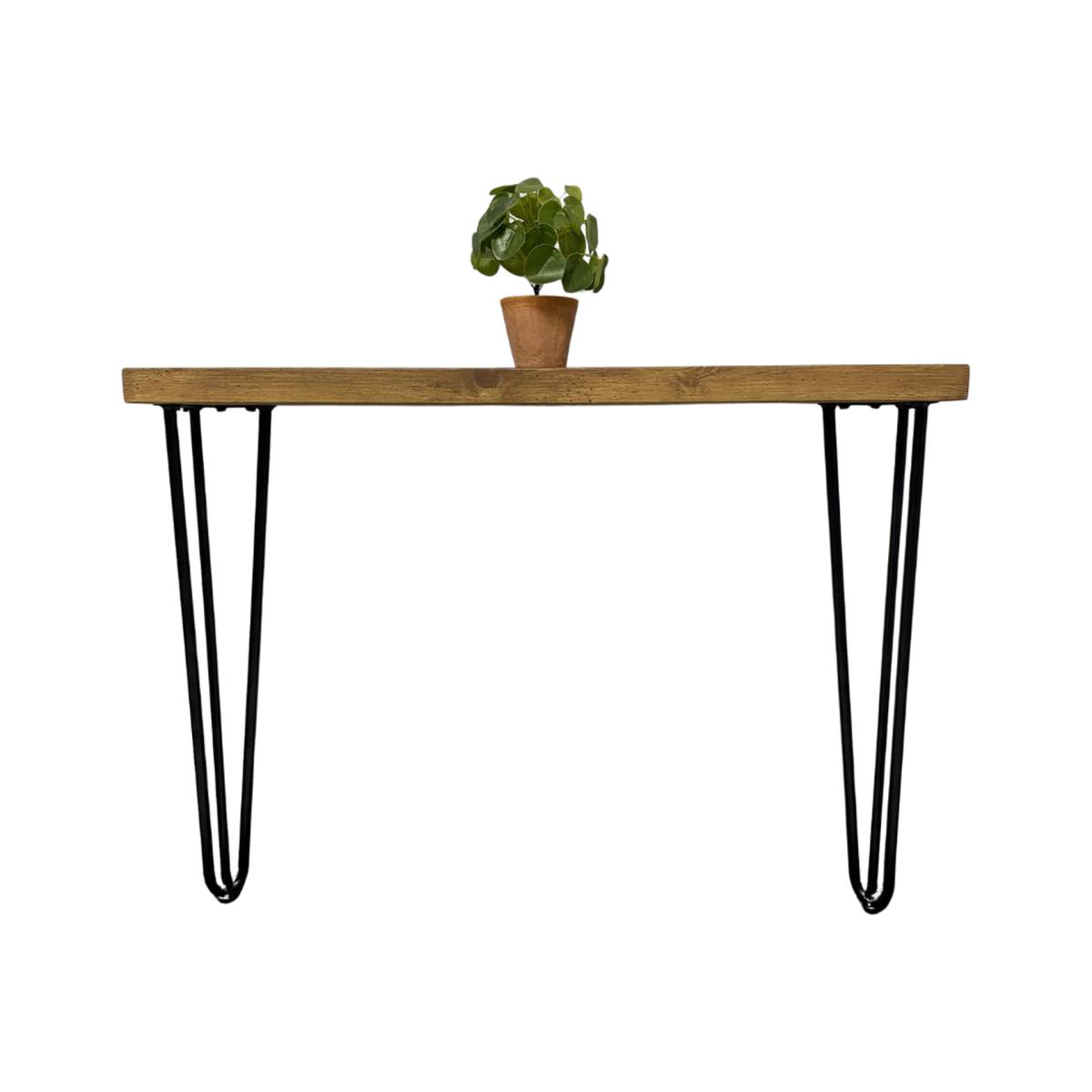 Enhance your living space with this sleek and stylish modern side console table. Featuring a 40mm veneer top, this table combines durability with a sophisticated wood-like finish. The sturdy iron tube legs are powder-coated for a chic look, ensuring long-lasting stability and resistance to wear. Measuring 100cm in length, 17.5cm in width, and 75cm in height, this console table is perfect for hallways, entryways, or living rooms. The table top provides ample space for decorative items, books, or other essentials. Add a touch of contemporary elegance to your home with this versatile and functional piece.