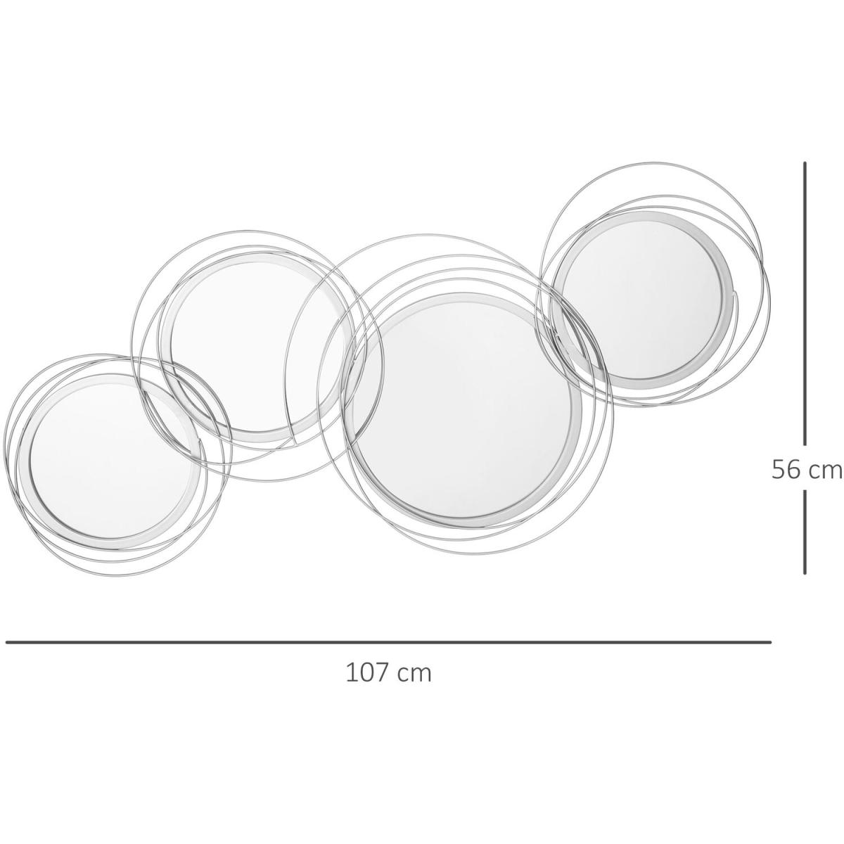 Decorative and functional - what's not to like with this mirrored wall art from HOMCOM? Here this piece features four mirrors for plenty of reflection - each framed with cut-out asymmetric circular pieces fixed together. covered in a gold-tone finish for a brush of glamour. A metal structure for lasting strength, this mirror features hooks on the back to attach to surfaces with ease - comes with a hanging kit so you have everything you need to use straight out the box.