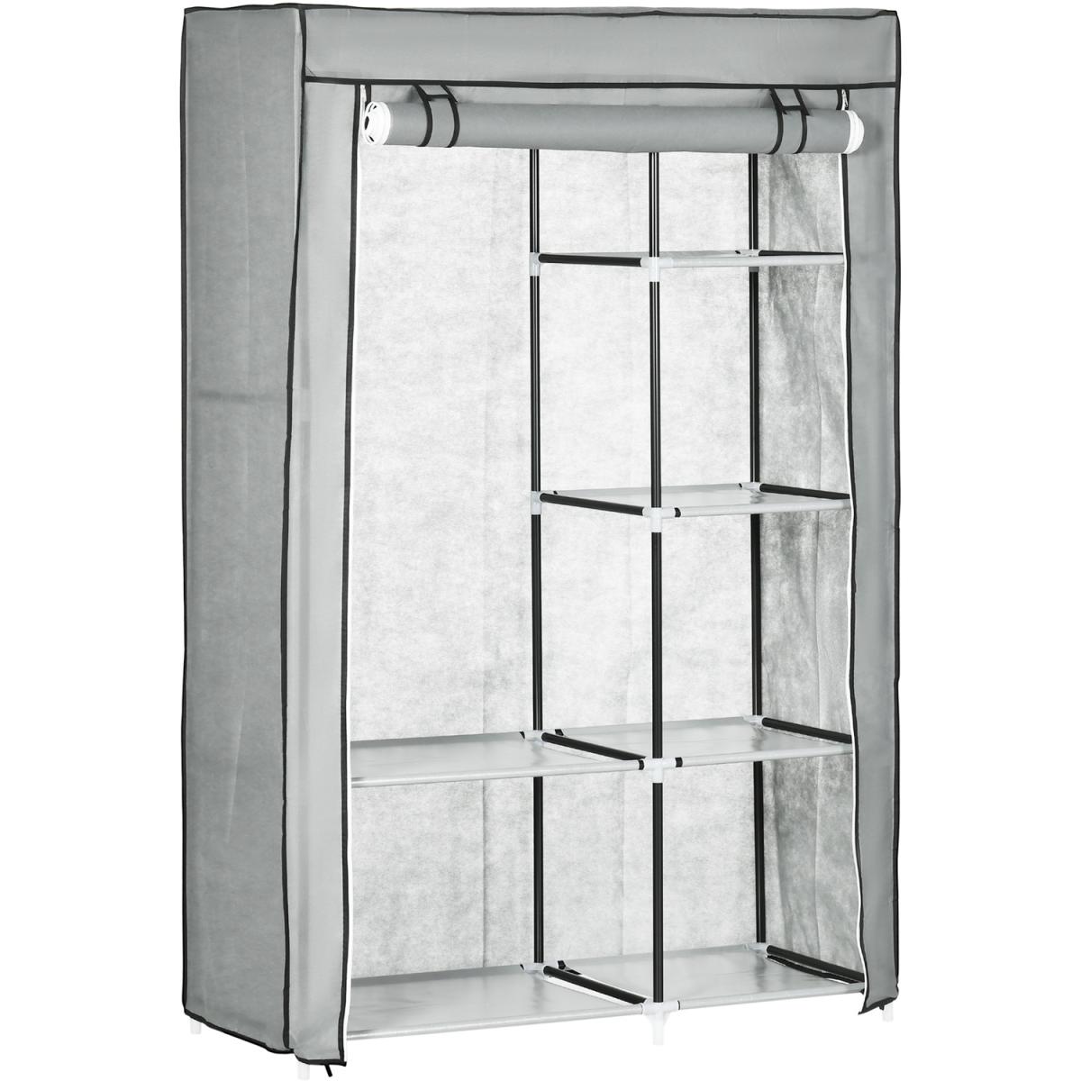 Modern Wardrobe Portable Wardrobe with 6 Shelves 1 Hanging Rail - Light Grey