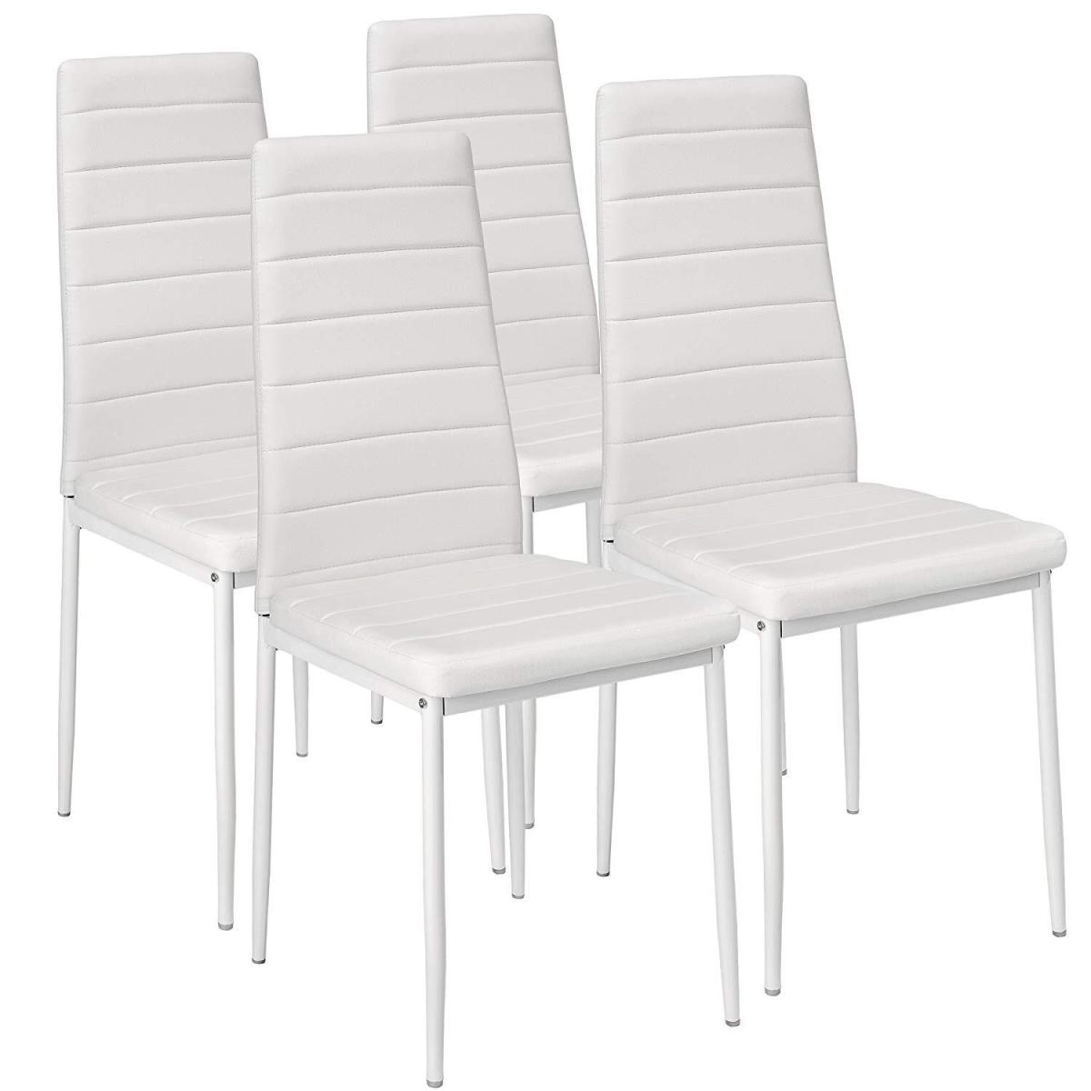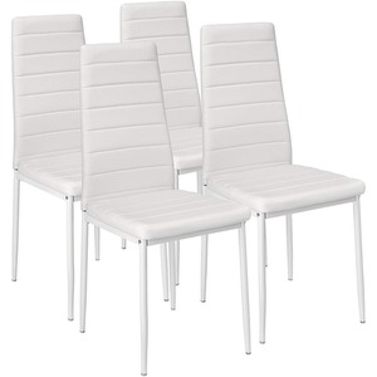Modern White and Black Wood Dining Table with White Faux Leather Chairs - 4
