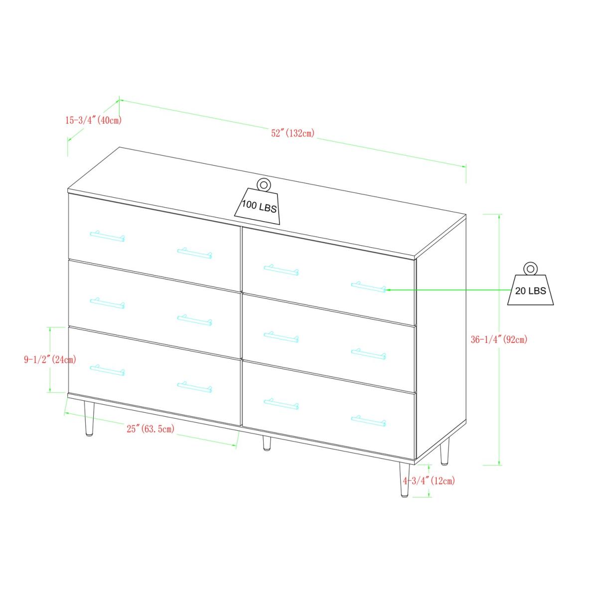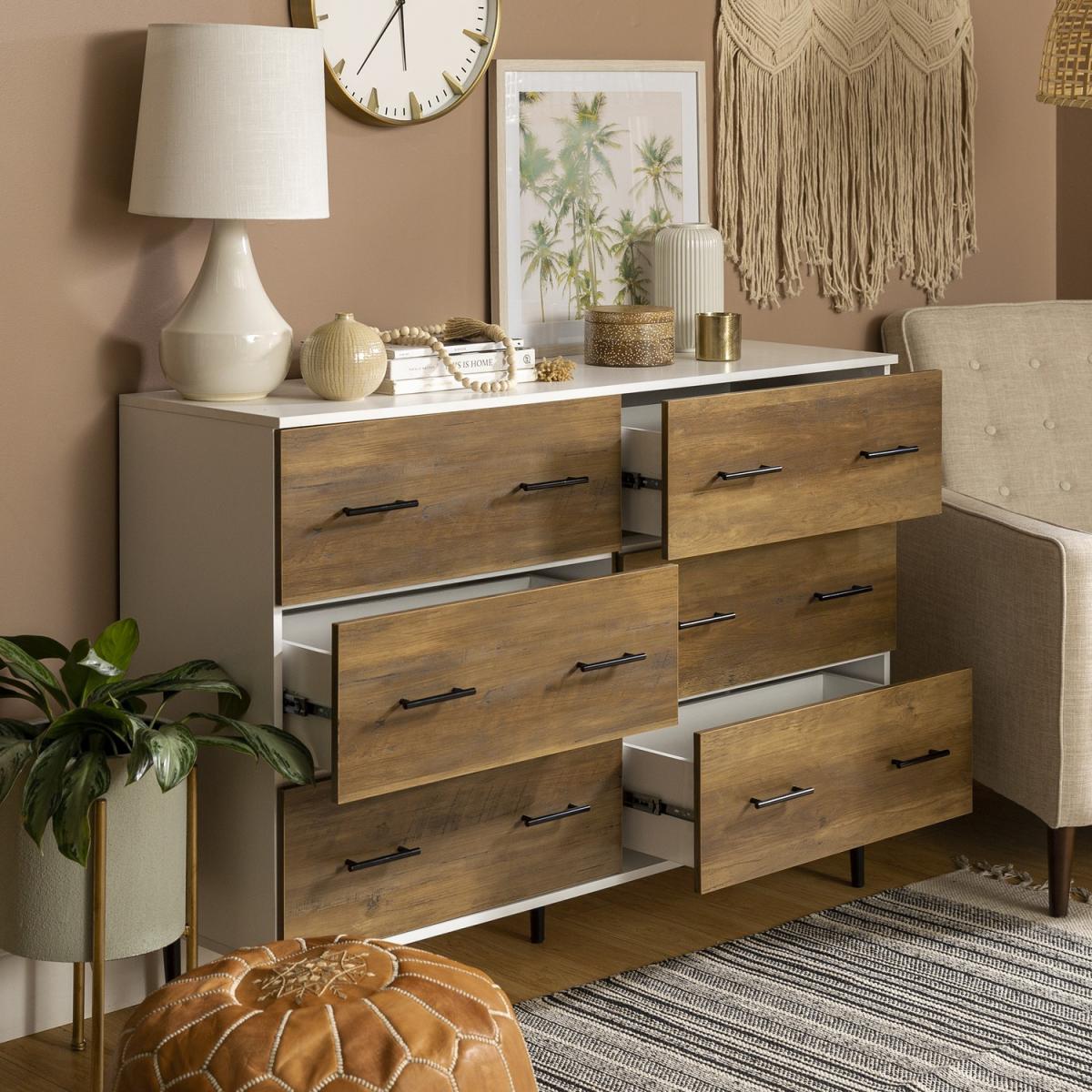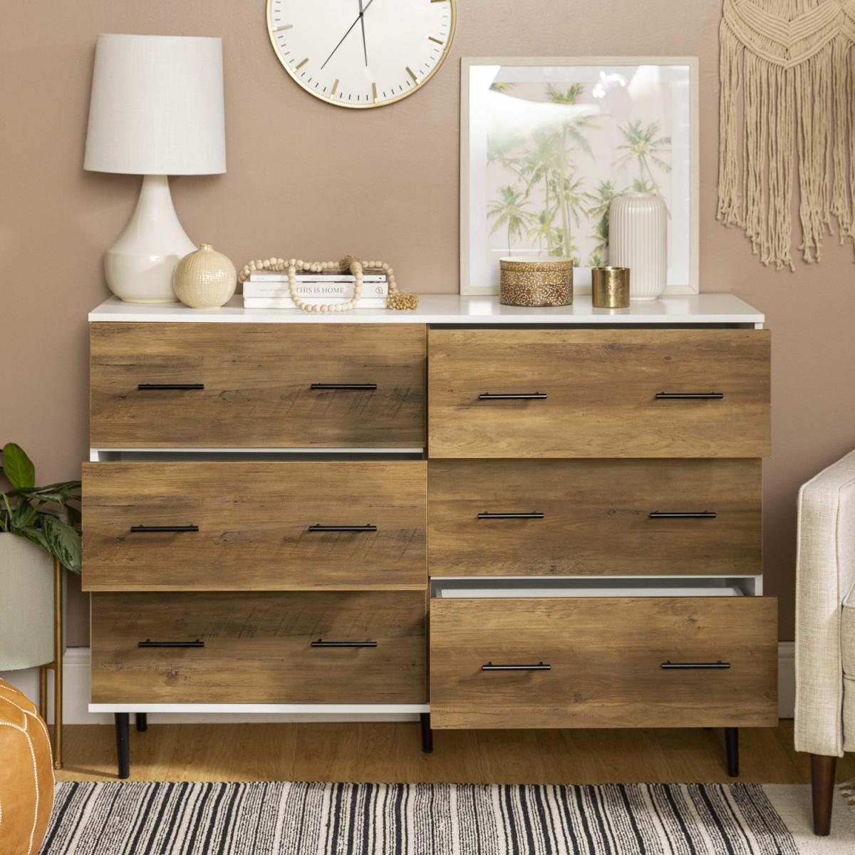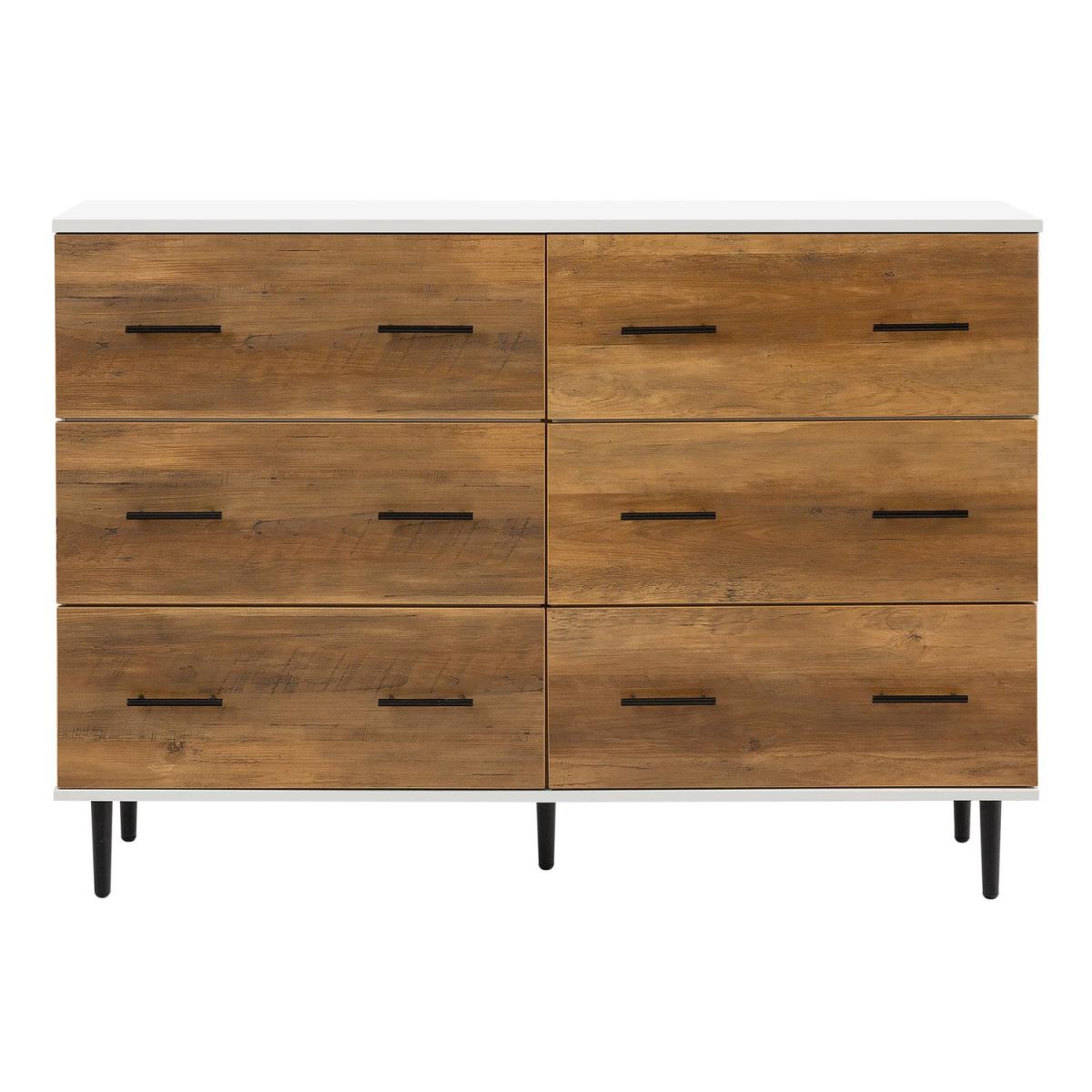 Modern Wood 6-Drawer Buffet - White/Rustic Oak