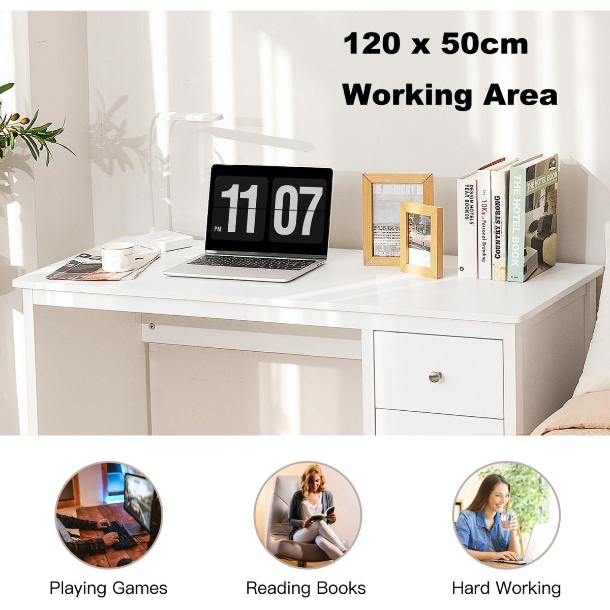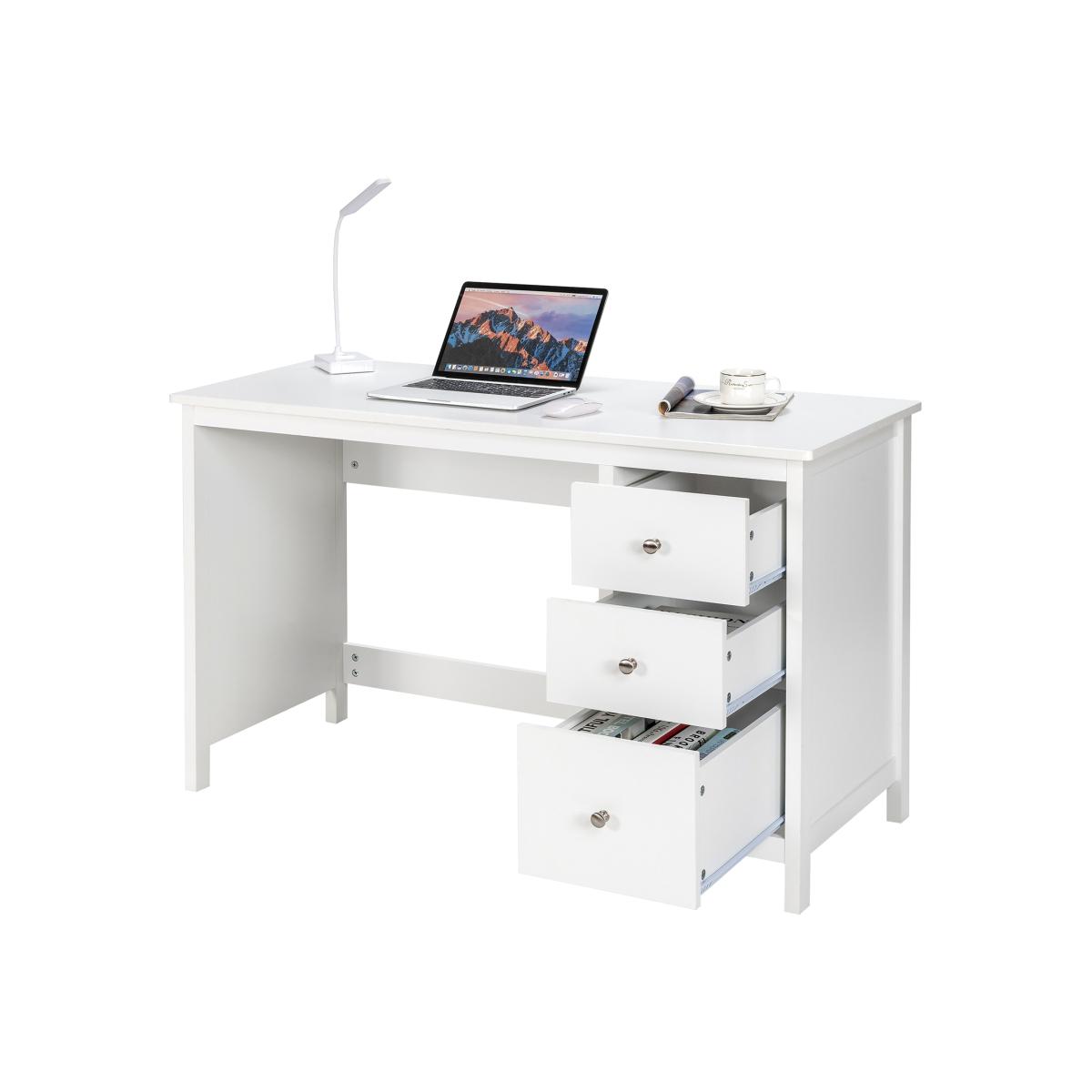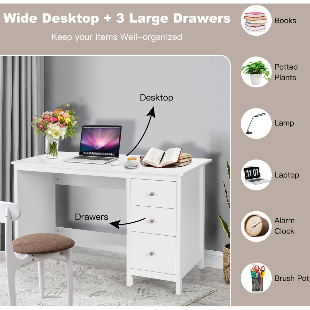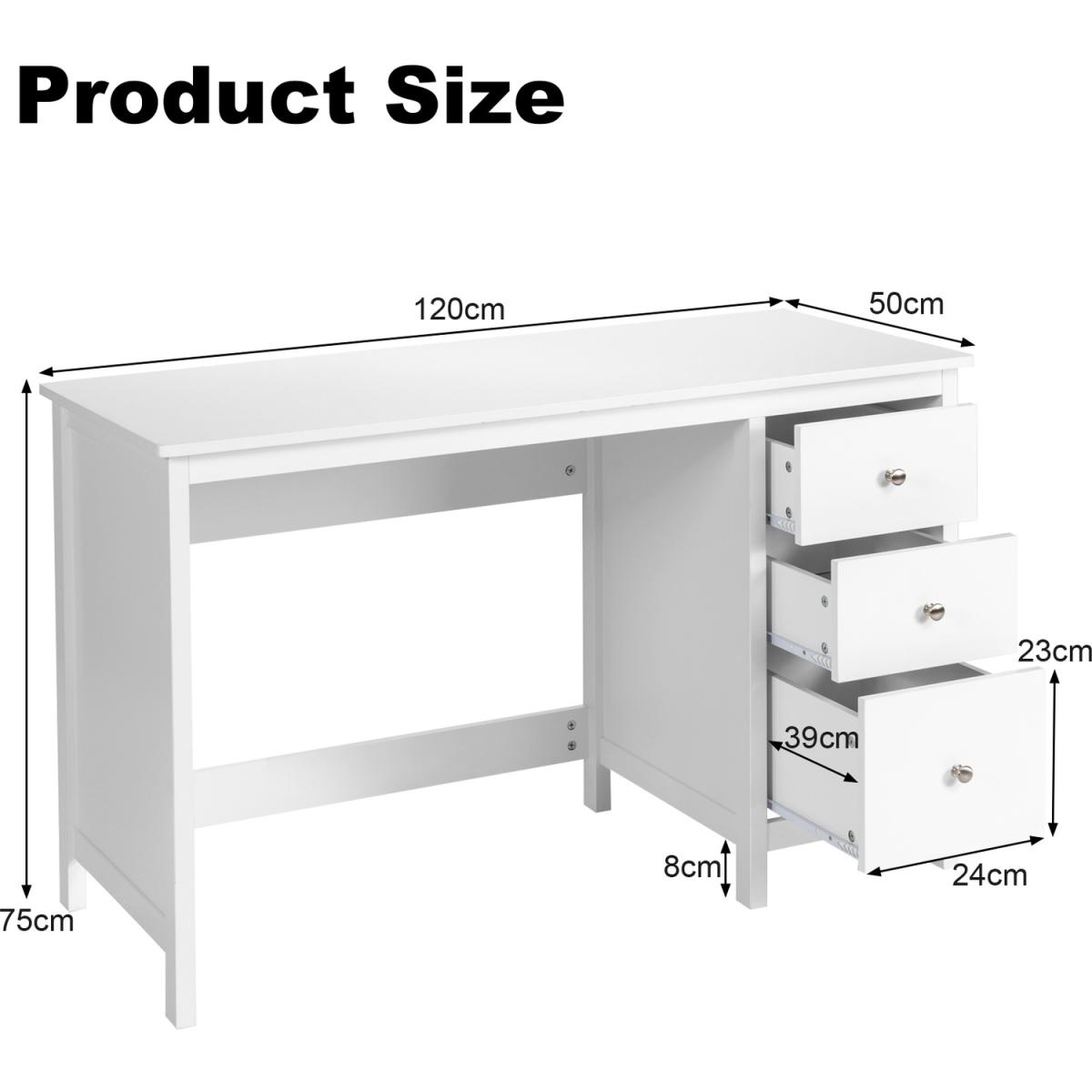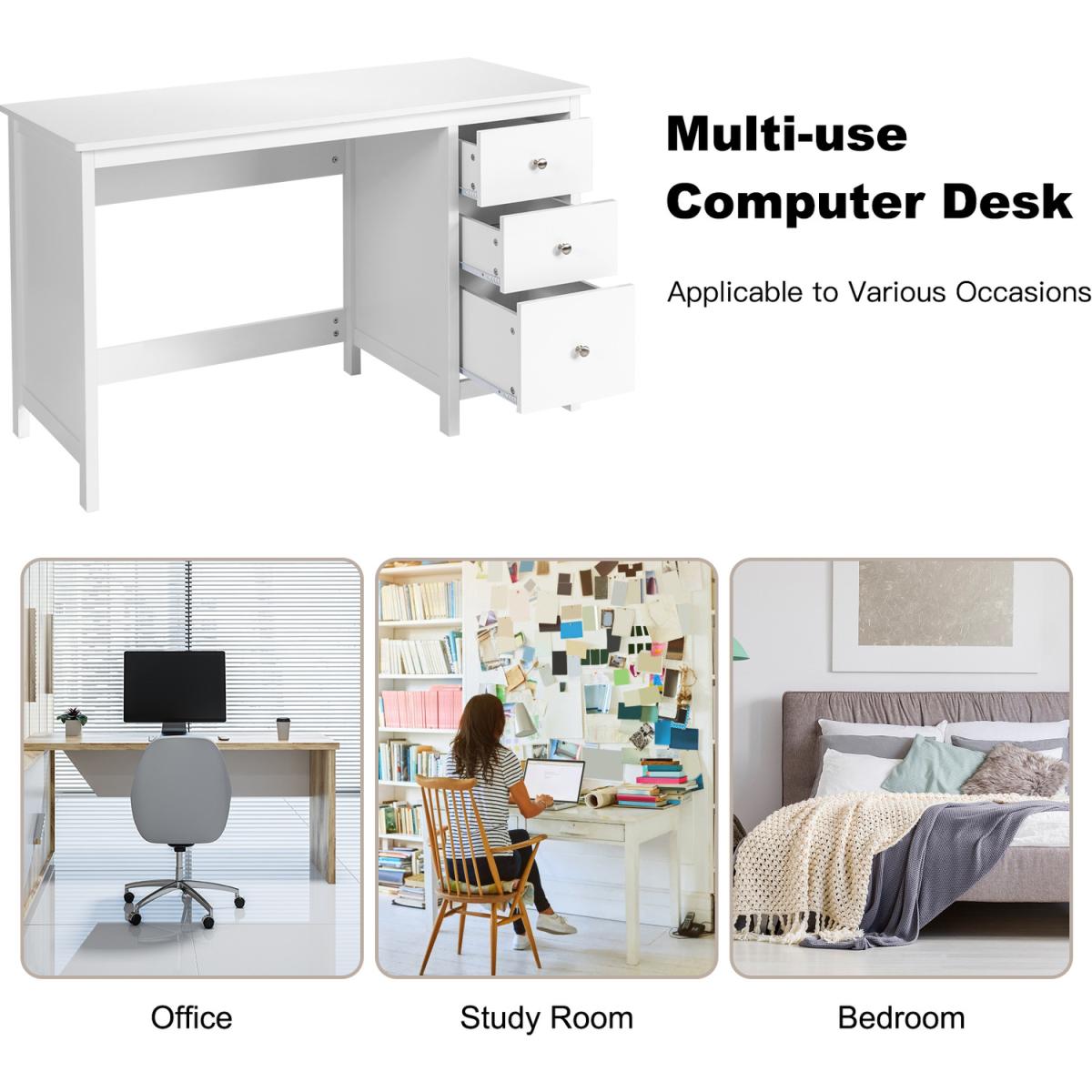 Our computer desk is a combination of elegant appearance and multiple functions. 3 side drawers offer sufficient storage space for personal items. Besides, the office desk is designed with spacious desktop to ensure optimal workspace and makes your stuffs well-organized. The compact design takes advantage of vertical large space for storage and display. With modern style and versatile use, it is a charming complement to your home and fits perfectly in wherever you want to place. Don't hesitate to take our computer desk home!