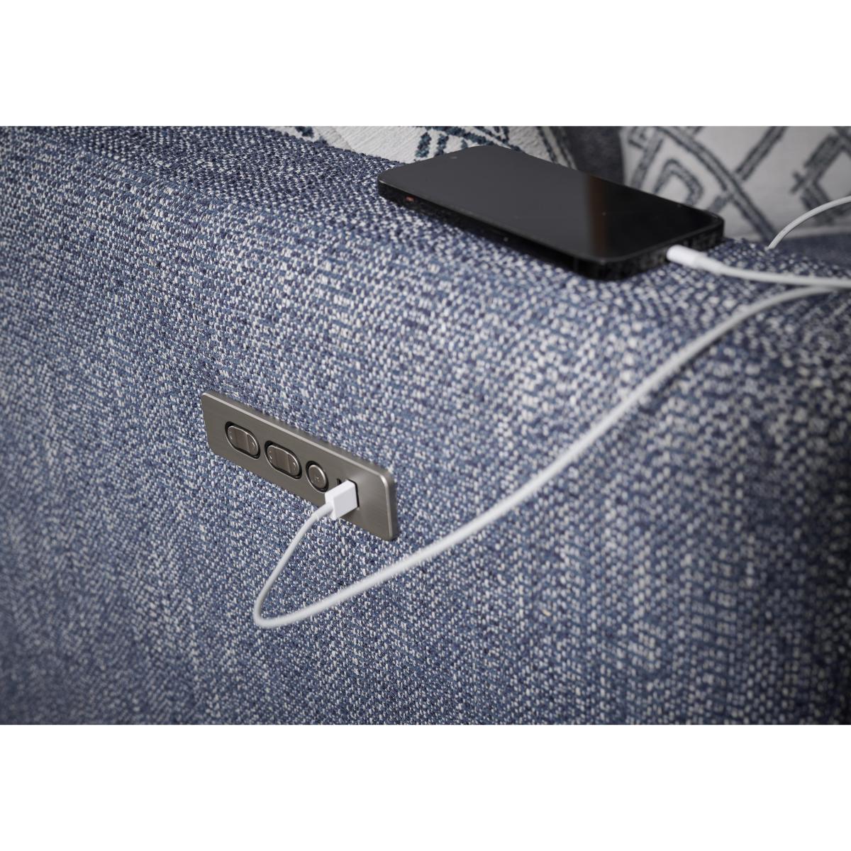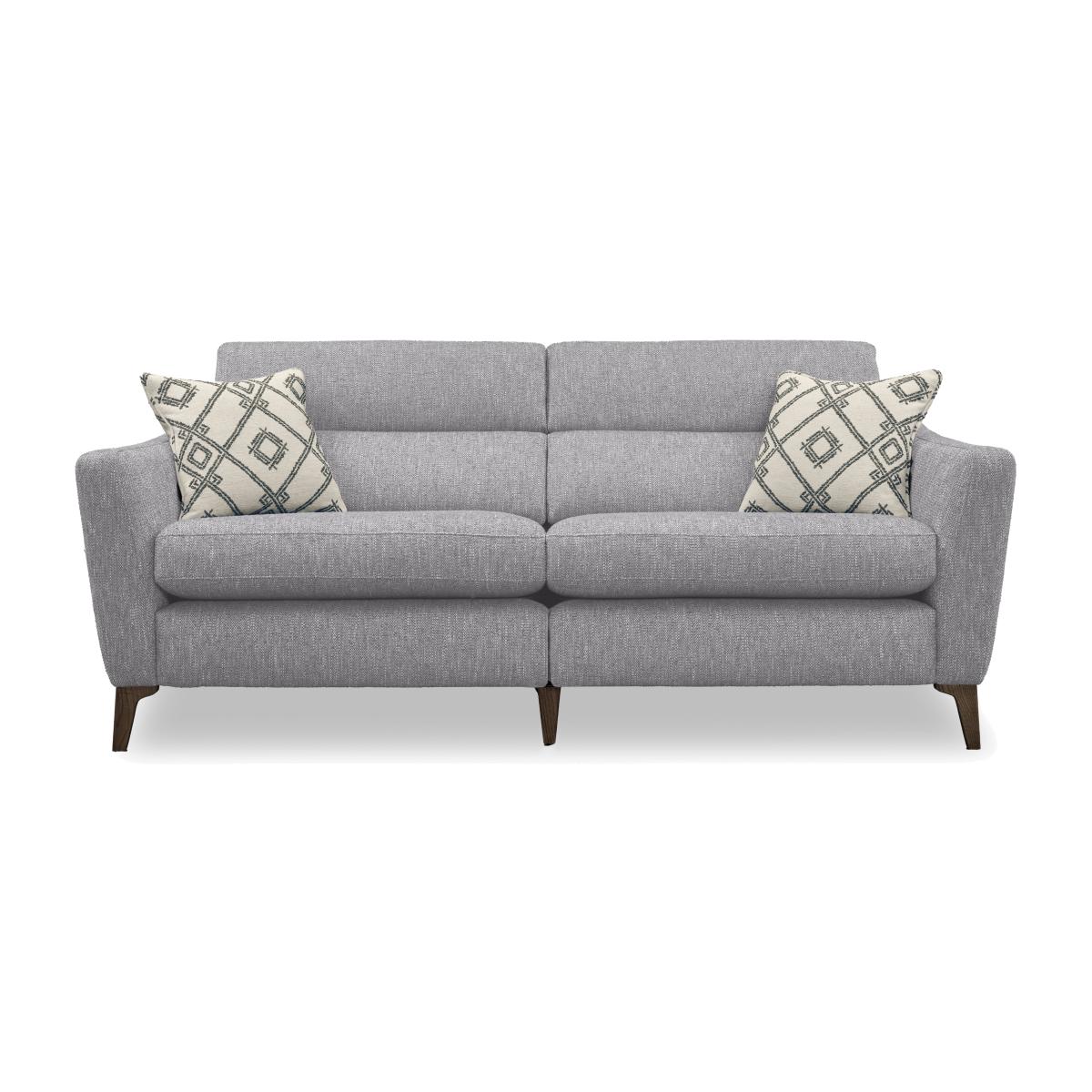 It’ll come as no surprise that a range named Moderna celebrates everything we love about modern sofas. With chic lines, elegant proportions and a touch of on-trend retro style, this range looks the part. And with sprung seats and backs for all-over support, fabulously comfy cushioning and feather scatters, your comfort is covered. The range also offers optional power elevating footrests and power telescopic headrests. And we think you’ll find Moderna’s extra touches very welcome, too. For longer-lasting comfort and style, all seat cushions are reversible – even on the power reclining sofas – and a wide choice of modular pieces makes it easy to design and redesign your perfect sofa. Handcrafted in the UK for Furniture Village. Chic, elegant and wonderfully comfortable with made-to-last reversible seat cushions, our Moderna three-seater recliner sofa comes with power elevating footrests and power telescopic headrests. Why you'll love it Elegant modern style with a touch of retro chic – and plenty of power relaxation. Comes with power elevating footrests and power telescopic headrests. Sprung seats and back for all-over support plus super-comfy cushioning. Handy USB and USB-C device charging ports. Built for long-lasting comfort with reversible seat cushions. In a fantastic selection of fashionable upholstery fabrics. Includes 2 feather accent cushions in a contrasting patterned fabric. Tapered legs in a choice of finishes. Designed to last. This sofa comes with a 25-year frame guarantee. Moderna is modular. Handmade in the UK for Furniture Village. This 3-seater power recliner sofa is part of our Moderna range. What you need to know Medium comfort level. Seat suspension: 9-gauge serpentine springs. Seat cushioning: foam core with carded fibre wrap. Cushioning is reversible. Back support: elastic webbing. Back cushioning: fibre. Cushioning is not reversible. Feet are removable. Please allow time for new recliners to ease. Minor gaps are necessary to ensure ease of recliner motion and may be exaggerated depending on floor type. To maintain cushion shape and fullness, be sure to plump daily. Rotate seat cushions for more even wear. Some fabrics can show wear on areas of more use or in direct sunlight. Clean regularly using a soft brush or vacuum with the curtain attachment. Deal with any spills promptly. Professional cleaning advised for oil- and grease-based stains. Please read our upholstery care guide for more advice. Item code: MODA3SPHFAB-039