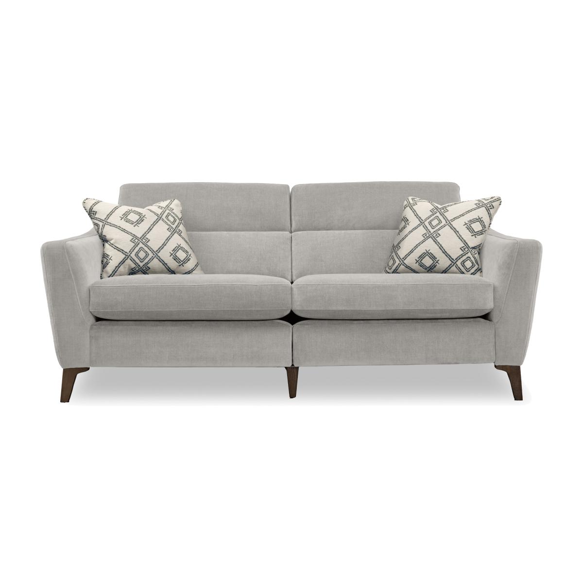 It’ll come as no surprise that a range named Moderna celebrates everything we love about modern sofas. With chic lines, elegant proportions and a touch of on-trend retro style, this range looks the part. And with sprung seats and backs for all-over support, fabulously comfy cushioning and feather scatters, your comfort is covered. The range also offers optional power elevating footrests and power telescopic headrests. And we think you’ll find Moderna’s extra touches very welcome, too. For longer-lasting comfort and style, all seat cushions are reversible – even on the power reclining sofas – and a wide choice of modular pieces makes it easy to design and redesign your perfect sofa. Handcrafted in the UK for Furniture Village. Chic, elegant and wonderfully comfortable with made-to-last reversible seat cushions, our Moderna three-seater is everything you want in a well-crafted modern sofa. It’s also available with power elevating footrests. Why you'll love it Elegant modern style with a touch of retro chic. Sprung seats and back for all-over support plus super-comfy cushioning. Want more? This 3-seater sofa is available with power elevating footrests. Built for long-lasting comfort with reversible seat cushions – even on the power recliner model. Power sofa has USB and USB-C device charging. In a fantastic selection of fashionable upholstery fabrics. Includes 2 feather accent cushions in a contrasting patterned fabric. Tapered legs in a choice of finishes. Designed to last. This sofa comes with a 25-year frame guarantee. Moderna is modular. Handmade in the UK for Furniture Village. This 3-seater sofa is part of our Moderna range. What you need to know Medium comfort level. Seat suspension: 9-gauge serpentine springs. Seat cushioning: foam core with carded fibre wrap. Cushioning is reversible. Back support: elastic webbing. Back cushioning: fibre. Cushioning is fixed. Feet are removable. The non-power version of this sofa does not have USB and USB-C device charging. Please allow time for new recliners to ease. Minor gaps are necessary to ensure ease of recliner motion and may be exaggerated depending on floor type. To maintain cushion shape and fullness, be sure to plump daily. Rotate seat cushions for more even wear. Some fabrics can show wear on areas of more use or in direct sunlight. Clean regularly using a soft brush or vacuum with the curtain attachment. Deal with any spills promptly. Professional cleaning advised for oil- and grease-based stains. Please read our upholstery care guide for more advice. Item code: MODA3SP-FAB-027
