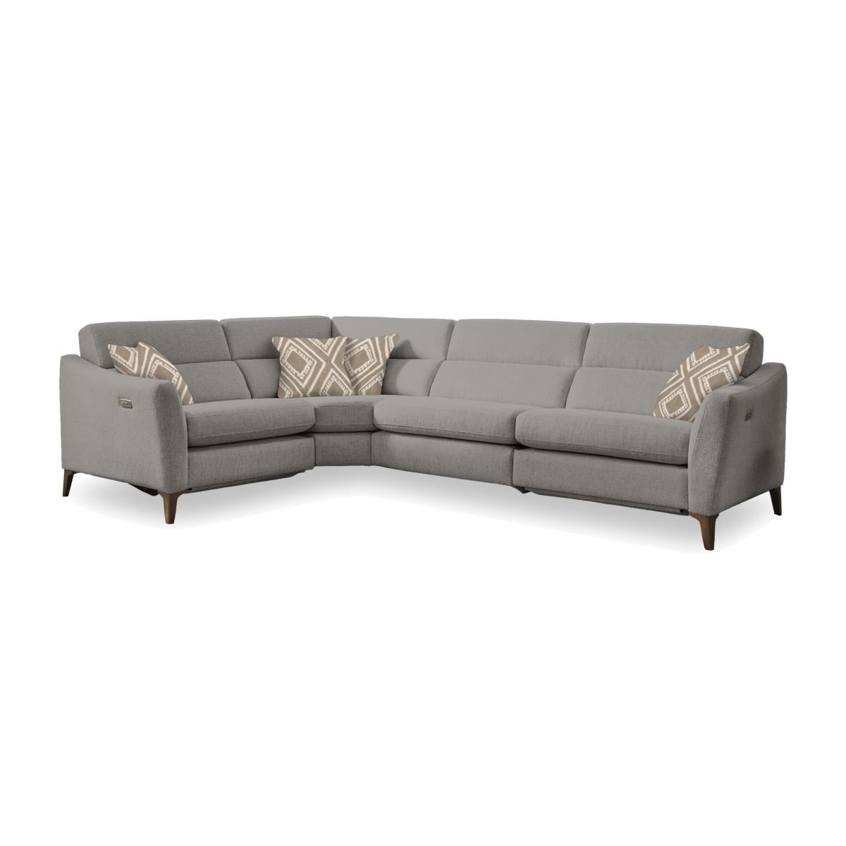 It’ll come as no surprise that a range named Moderna celebrates everything we love about modern sofas. With chic lines, elegant proportions and a touch of on-trend retro style, this range looks the part. And with sprung seats and backs for all-over support, fabulously comfy cushioning and feather scatters, your comfort is covered. The range also offers optional power elevating footrests and power telescopic headrests. And we think you’ll find Moderna’s extra touches very welcome, too. For longer-lasting comfort and style, all seat cushions are reversible – even on the power reclining sofas – and a wide choice of modular pieces makes it easy to design and redesign your perfect sofa. Handcrafted in the UK for Furniture Village. Chic, elegant and wonderfully comfortable with made-to-last reversible seat cushions, our Moderna corner sofa is everything you want in a well-crafted modern sofa. It’s also available with power elevating footrests. Why you'll love it Elegant modern style with a touch of retro chic. Sprung seats and back for all-over support plus super-comfy cushioning. Want more? This corner sofa is available with power elevating footrests. Built for long-lasting comfort with reversible seat cushions – even on the power recliner model. Power sofa has USB and USB-C device charging. In a fantastic selection of fashionable upholstery fabrics. Includes 4 feather accent cushions in a contrasting patterned fabric. Tapered legs in a choice of finishes. Designed to last. This sofa comes with a 25-year frame guarantee. Moderna is modular. Handmade in the UK for Furniture Village. This corner sofa is part of our Moderna range. What you need to know Medium comfort level. Seat suspension: 9-gauge serpentine springs. Seat cushioning: foam core with carded fibre wrap. Cushioning is reversible. Back support: elastic webbing. Back cushioning: fibre. Cushioning is not reversible. Feet are removable. The non-power version of this sofa does not have USB and USB-C device charging. Please allow time for new recliners to ease. Minor gaps are necessary to ensure ease of recliner motion and may be exaggerated depending on floor type. To maintain cushion shape and fullness, be sure to plump daily. Rotate seat cushions for more even wear. Some fabrics can show wear on areas of more use or in direct sunlight. Clean regularly using a soft brush or vacuum with the curtain attachment. Deal with any spills promptly. Professional cleaning advised for oil- and grease-based stains. Please read our upholstery care guide for more advice. Item code: MODALCP-FAB-028