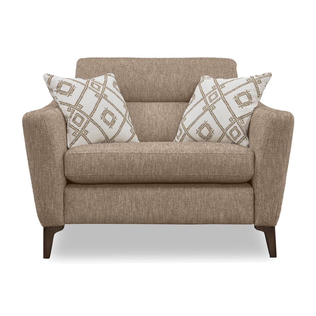 It’ll come as no surprise that a range named Moderna celebrates everything we love about modern sofas. With chic lines, elegant proportions and a touch of on-trend retro style, this range looks the part. And with sprung seats and backs for all-over support, fabulously comfy cushioning and feather scatters, your comfort is covered. The range also offers optional power elevating footrests and power telescopic headrests. And we think you’ll find Moderna’s extra touches very welcome, too. For longer-lasting comfort and style, all seat cushions are reversible – even on the power reclining sofas – and a wide choice of modular pieces makes it easy to design and redesign your perfect sofa. Handcrafted in the UK for Furniture Village. Chic, elegant and wonderfully comfortable with made-to-last reversible seat cushioning, our Moderna recliner snuggler chair comes with a power elevating footrest and a power telescopic headrest. Why you'll love it Elegant modern style with a touch of retro chic – and plenty of power relaxation. Comes with a power elevating footrest and a power telescopic headrest. Sprung seat and back for all-over support plus super-comfy cushioning. Handy USB and USB-C device charging ports. Built for long-lasting comfort with a reversible seat cushion. In a fantastic selection of fashionable upholstery fabrics. Includes 2 feather accent cushions in a contrasting patterned fabric. Tapered legs in a choice of finishes. Designed to last. This snuggler comes with a 25-year frame guarantee. Moderna is modular. Handmade in the UK for Furniture Village. This power recliner snuggler is part of our Moderna range. What you need to know Medium comfort level. Seat suspension: 9-gauge serpentine springs. Seat cushioning: foam core with carded fibre wrap. Cushioning is reversible. Back support: elastic webbing. Back cushioning: fibre. Cushioning is not reversible. Feet are removable. Please allow time for new recliners to ease. Minor gaps are necessary to ensure ease of recliner motion and may be exaggerated depending on floor type. To maintain cushion shape and fullness, be sure to plump daily. Some fabrics can show wear on areas of more use or in direct sunlight. Clean regularly using a soft brush or vacuum with the curtain attachment. Deal with any spills promptly. Professional cleaning advised for oil- and grease-based stains. Please read our upholstery care guide for more advice. Item code: MODASGPHFAB-042