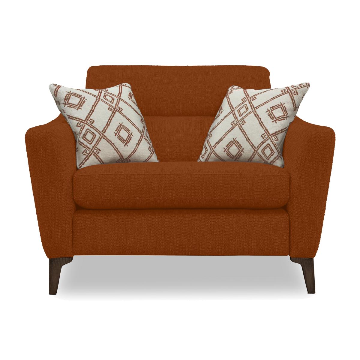 It’ll come as no surprise that a range named Moderna celebrates everything we love about modern sofas. With chic lines, elegant proportions and a touch of on-trend retro style, this range looks the part. And with sprung seats and backs for all-over support, fabulously comfy cushioning and feather scatters, your comfort is covered. The range also offers optional power elevating footrests and power telescopic headrests. And we think you’ll find Moderna’s extra touches very welcome, too. For longer-lasting comfort and style, all seat cushions are reversible – even on the power reclining sofas – and a wide choice of modular pieces makes it easy to design and redesign your perfect sofa. Handcrafted in the UK for Furniture Village. Chic, elegant and wonderfully comfortable with made-to-last reversible seat cushions, our Moderna snuggler is everything you want in a well-crafted modern sofa. It’s also available with a power elevating footrest. Why you'll love it Elegant modern style with a touch of retro chic. Sprung seats and back for all-over support plus super-comfy cushioning. Want more? This snuggler is available with a power elevating footrest. Built for long-lasting comfort with a reversible seat cushion – even on the power recliner model. Power snuggler has USB and USB-C device charging. In a fantastic selection of fashionable upholstery fabrics. Includes 2 feather accent cushions in a contrasting patterned fabric. Tapered legs in a choice of finishes. Designed to last. This snuggler comes with a 25-year frame guarantee. Moderna is modular. Handmade in the UK for Furniture Village. This snuggler is part of our Moderna range. What you need to know Medium comfort level. Seat suspension: 9-gauge serpentine springs. Seat cushioning: foam core with carded fibre wrap. Cushioning is reversible. Back support: elastic webbing. Back cushioning: fibre. Cushioning is not reversible. Feet are removable. The non-power version of this snuggler does not have USB and USB-C device charging. Please allow time for new recliners to ease. Minor gaps are necessary to ensure ease of recliner motion and may be exaggerated depending on floor type. To maintain cushion shape and fullness, be sure to plump daily. Rotate seat cushions for more even wear. Some fabrics can show wear on areas of more use or in direct sunlight. Clean regularly using a soft brush or vacuum with the curtain attachment. Deal with any spills promptly. Professional cleaning advised for oil- and grease-based stains. Please read our upholstery care guide for more advice. Item code: MODASGP-FAB-031