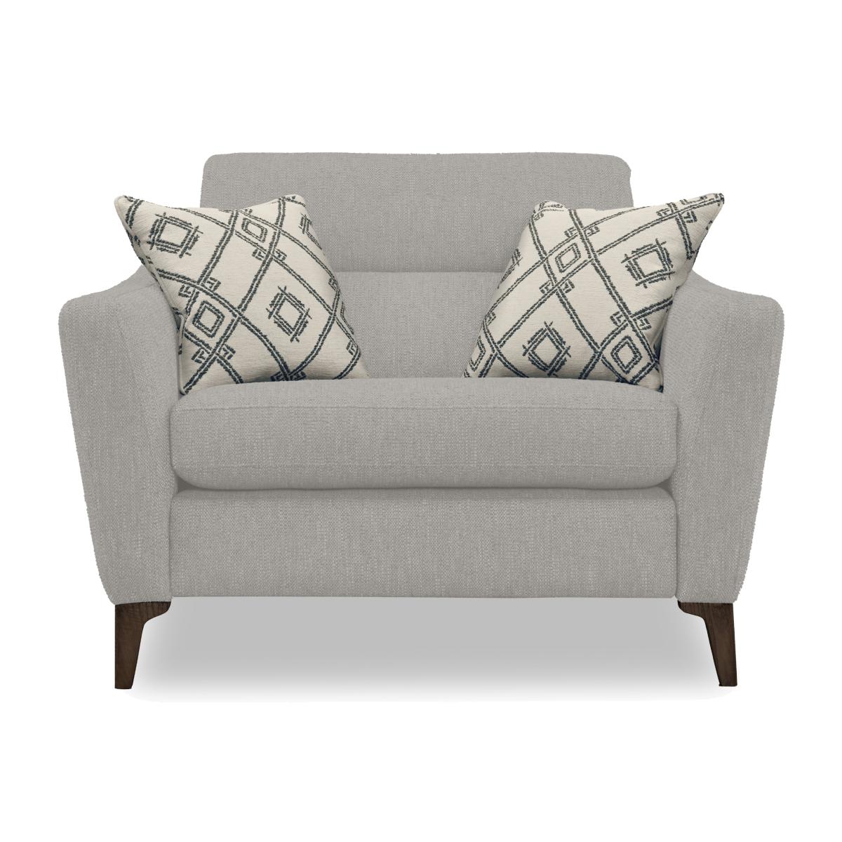 It’ll come as no surprise that a range named Moderna celebrates everything we love about modern sofas. With chic lines, elegant proportions and a touch of on-trend retro style, this range looks the part. And with sprung seats and backs for all-over support, fabulously comfy cushioning and feather scatters, your comfort is covered. The range also offers optional power elevating footrests and power telescopic headrests. And we think you’ll find Moderna’s extra touches very welcome, too. For longer-lasting comfort and style, all seat cushions are reversible – even on the power reclining sofas – and a wide choice of modular pieces makes it easy to design and redesign your perfect sofa. Handcrafted in the UK for Furniture Village. Chic, elegant and wonderfully comfortable with made-to-last reversible seat cushions, our Moderna snuggler is everything you want in a well-crafted modern sofa. It’s also available with a power elevating footrest. Why you'll love it Elegant modern style with a touch of retro chic. Sprung seats and back for all-over support plus super-comfy cushioning. Want more? This snuggler is available with a power elevating footrest. Built for long-lasting comfort with a reversible seat cushion – even on the power recliner model. Power snuggler has USB and USB-C device charging. In a fantastic selection of fashionable upholstery fabrics. Includes 2 feather accent cushions in a contrasting patterned fabric. Tapered legs in a choice of finishes. Designed to last. This snuggler comes with a 25-year frame guarantee. Moderna is modular. Handmade in the UK for Furniture Village. This snuggler is part of our Moderna range. What you need to know Medium comfort level. Seat suspension: 9-gauge serpentine springs. Seat cushioning: foam core with carded fibre wrap. Cushioning is reversible. Back support: elastic webbing. Back cushioning: fibre. Cushioning is not reversible. Feet are removable. The non-power version of this snuggler does not have USB and USB-C device charging. Please allow time for new recliners to ease. Minor gaps are necessary to ensure ease of recliner motion and may be exaggerated depending on floor type. To maintain cushion shape and fullness, be sure to plump daily. Rotate seat cushions for more even wear. Some fabrics can show wear on areas of more use or in direct sunlight. Clean regularly using a soft brush or vacuum with the curtain attachment. Deal with any spills promptly. Professional cleaning advised for oil- and grease-based stains. Please read our upholstery care guide for more advice. Item code: MODASG--FAB-027