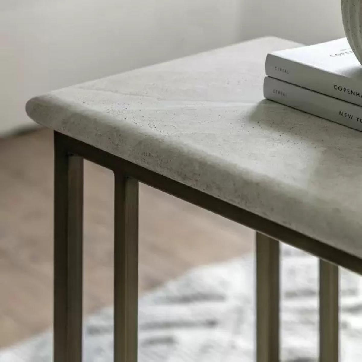 This lovely supper table will add a touch of sophisticated elegance to a room. The top features the most amazing travertine faux finish which is created with the latest state of the art technology to give the look and feel of the real thing but without the weight and technical difficulties. The faux travertine is perfectly complemented by the metal base which has a classy bronzed brass finish, to give an understated luxury style, perfect for any classic modern interior. Matching items also available.