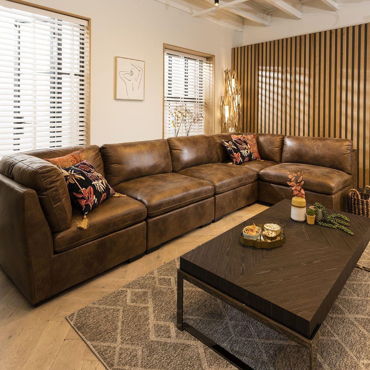 Versatile and stylish, this modern modular sofa set will transform your living room into a cosy haven. This is a 6 Seater Corner Sofa Set in an elegant antique brown leather-look fabric offers comfort and flexibility. With a modular design and secure clips, you can rearrange the sofa modules to suit your room layout. Expandable and adaptable, this sofa set allows you to add additional modules for even more seating space. Each module measures 95cm, providing you with the freedom to customise the size and shape of your sofa according to your preferences. Whether you have a large living room or a compact space, this sofa is the perfect fit. Sink into luxury with our super soft premium cushions, offering unparalleled comfort and support. The cushions are fixed in place, ensuring a neat and tidy appearance while preventing any shifting or slipping. You can relax and unwind for hours on end, indulging in the plushness of our carefully designed cushions. Not only does this sofa provide supreme comfort, but it also exudes an air of sophistication with its sleek black metal feet. Whether you're hosting a movie night with friends or simply enjoying some quality time with your loved ones, this modular sofa with its timeless design and luxurious features is a must-have for any home. It effortlessly blends functionality, style, and comfort, making it the ideal choice for both large and small spaces. Upgrade your living room and elevate your lounging experience with our exceptional modular sofa set today. W380cm D190cm H87cm 6 Seater Corner Sofa Set Fully modular design: this set includes 2x corner sections, 3x middle sections
