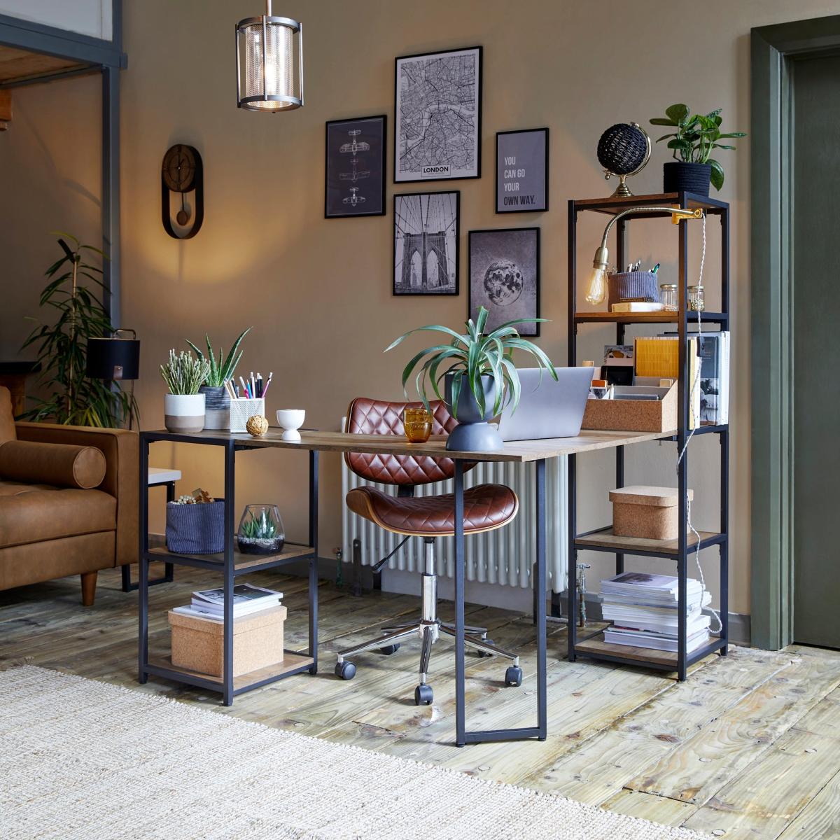 Customise your space, your way. Part of the Fulton Collection of the Modular Range, this corner desk and shelving unit has a simple design and pine colourway that will complement an array of home decors beautifully. Helping to bring an attractive look to your office or work-from-home area, this corner desk and shelving unit will aid in utilising the space you have, fitting into a corner, giving a large desk surface area and shelving space. The easy to clean, sturdy and durable piece is the ideal shelving and desk for your home. Let your inner interior design artist shine through with our new Modular Storage Range, a stylish, customisable storage solution meeting the demanding needs of any room of the house. The unique, boxy frame is available in an array of sizes, so choosing the right number of modules for your home has never been so easy!. Perfect for adapting, the Modular range has an industrial look and design, making it a statement piece that complements countless decors beautifully. Each element is sold separately, allowing you to create your own amazing space by constructing the Fulton Shelf to any of the layers, fitting your homes shape, size and decorative needs.