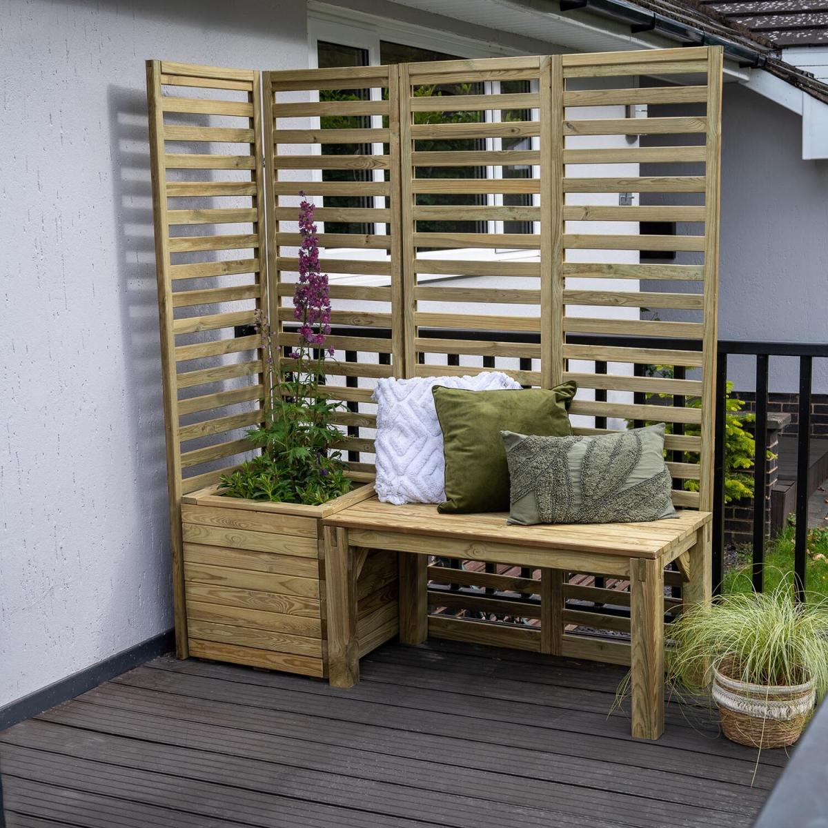 The sensational Modular Garden Seating is perfect for creating a stunning modern seating area in your garden. Ideal for entertaining, BBQs or relaxing in the sun, this spectacular seating is guaranteed to impress. Available in various designs, the Modular Garden Seating range provides flexibility to create a seating area which suits your needs and space. Each design includes trellis panels ideal for privacy, adding dimension to your garden and training climbing plant life. The stunning square planters are excellent for a variety of plants or flowers, whilst the comfortable benches are a fantastic place to unwind. The sturdy timber frame and natural wood colour will blend with existing garden structures and complement your greenery.