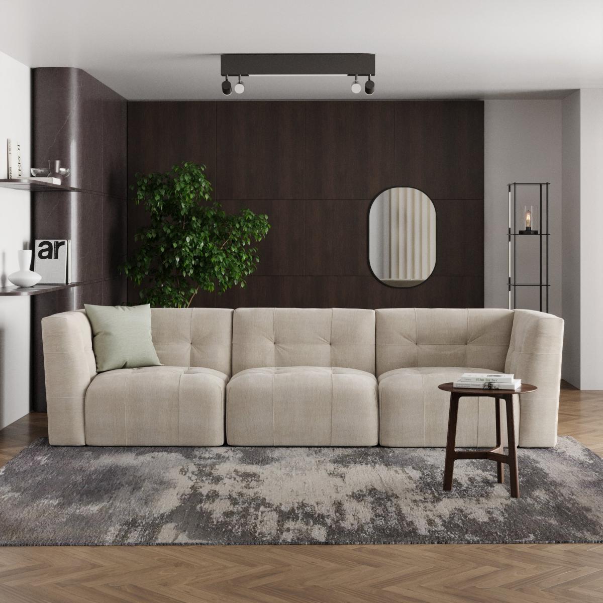 * Modular sofa bundle* Bundle includes: 1 x Squish Tonal Chenille LHF 1 Arm Piece, 1 x Squish Tonal Chenille RHF 1 Arm Piece and 1 x Squish Tonal Armless Piece* Lush and Trendy Tonal Chenille Upholstery* Stylish, contemporary design* Can be combined with additional Modular Squish pieces Trendy Chenille upholstery defines the comfort and contemporary allure of the Modular Squish 3 Seater Sofa. Its modular design makes it an ideal fit for any modern household, especially for those seeking a more relaxed ambience in their living spaces. The tonal chenille upholstery offers both style and unparalleled comfort. This bundle includes three modular pieces, forming a cosy 3 seater sofa, and effortlessly integrates with other Squish elements, allowing for a customisable modular setup that adapts to your evolving preferences.