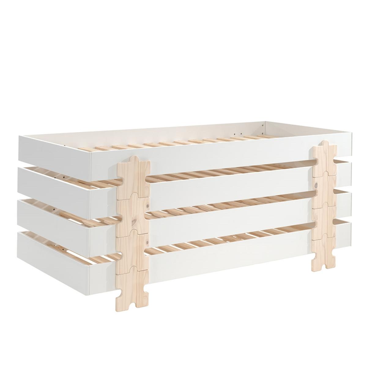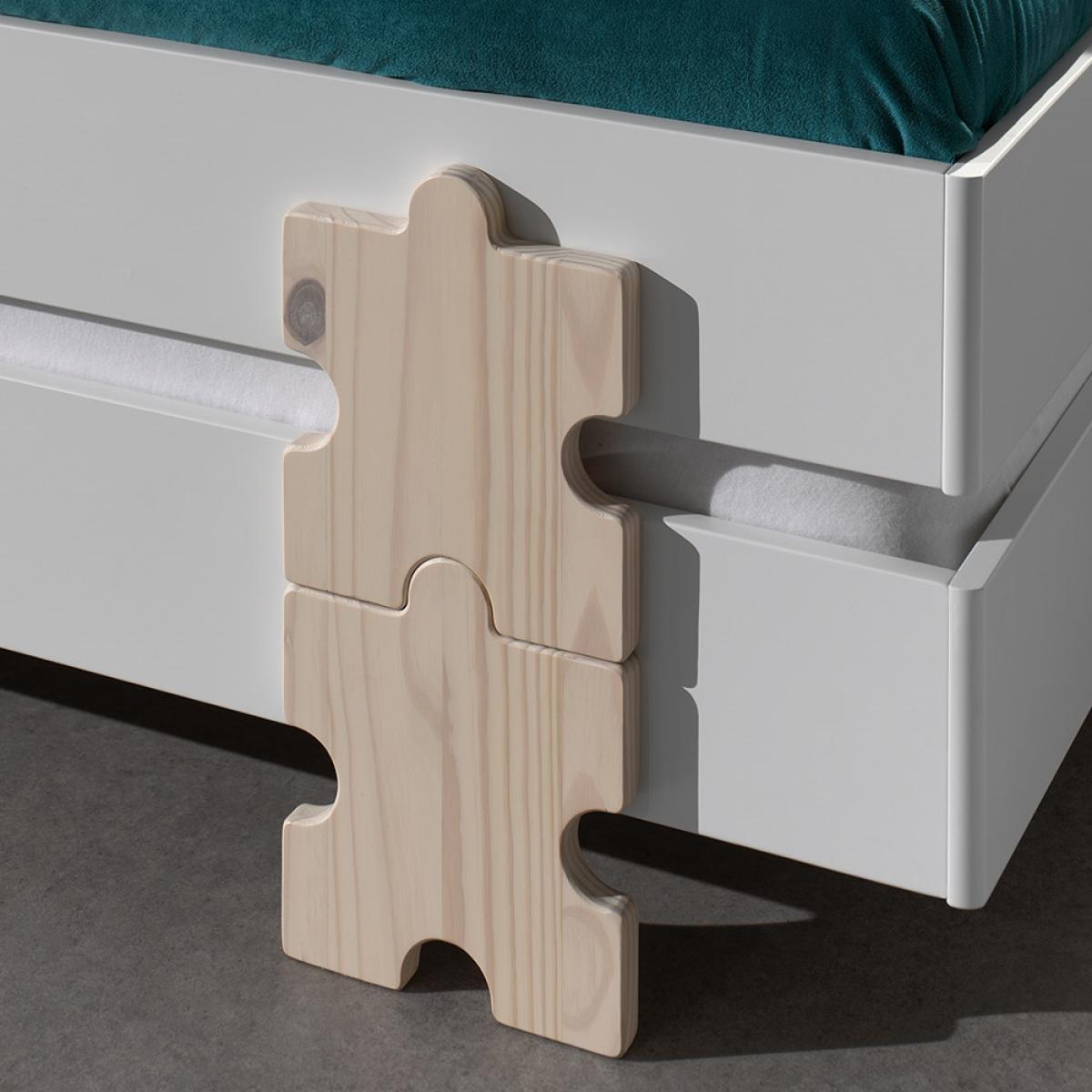 The Modulo Puzzle Stackable Kids Bed is the perfect space-saving solution for smaller bedrooms. Finished in a neutral colour and styled with wooden puzzle piece shaped legs, this simple detail adds a bit of fun to this kids bed. This single bed is ideal for kids sleepovers or when a guest comes to stay. Then during the day just neatly stack them on top of each other, sleepovers have never been so simple!.