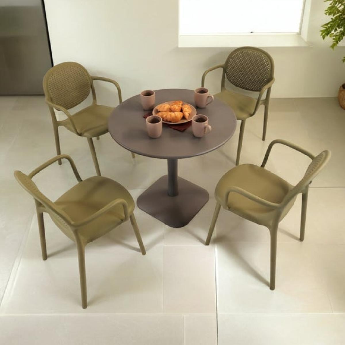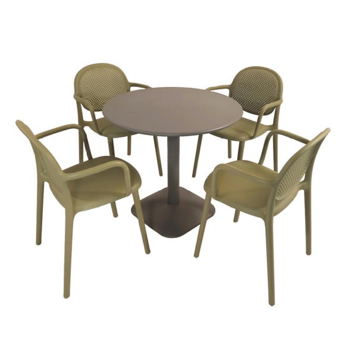 * Sturdy steel table * Stylish black finish * Avocado green chairs * Stackable for easy storage The Modura Albin Round Table with four Stina Armchairs brings a fresh, modern feel to any space. The Albin table’s clean lines and robust black steel frame offer lasting style and stability. Avocado green Stina chairs add a vibrant pop of colour, perfectly balancing the table’s sleek black finish. Lightweight and stackable, the chairs are easy to move and store when needed. Ideal for kitchens, dining areas, or outdoor spaces, it's a practical and stylish set with a contemporary twist.