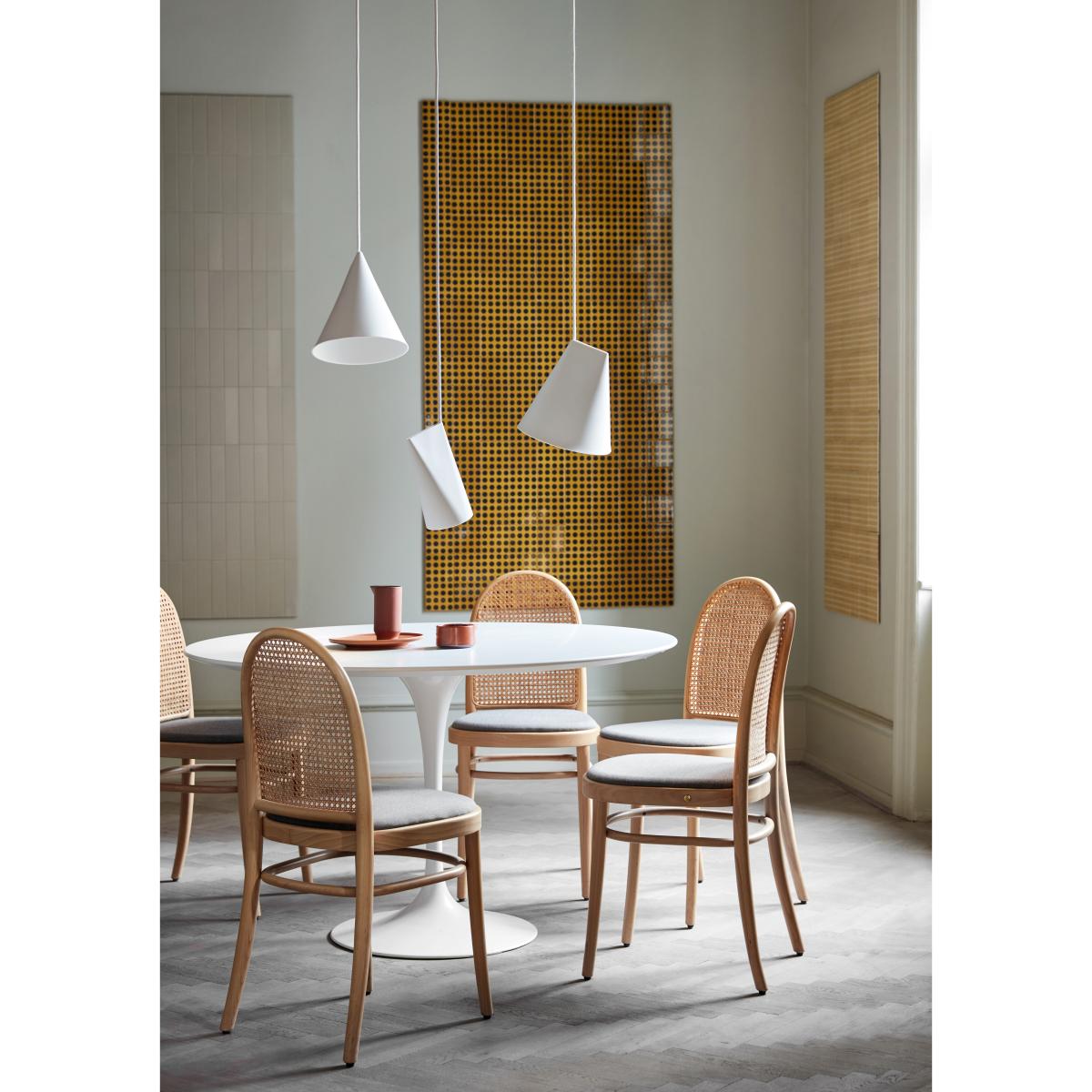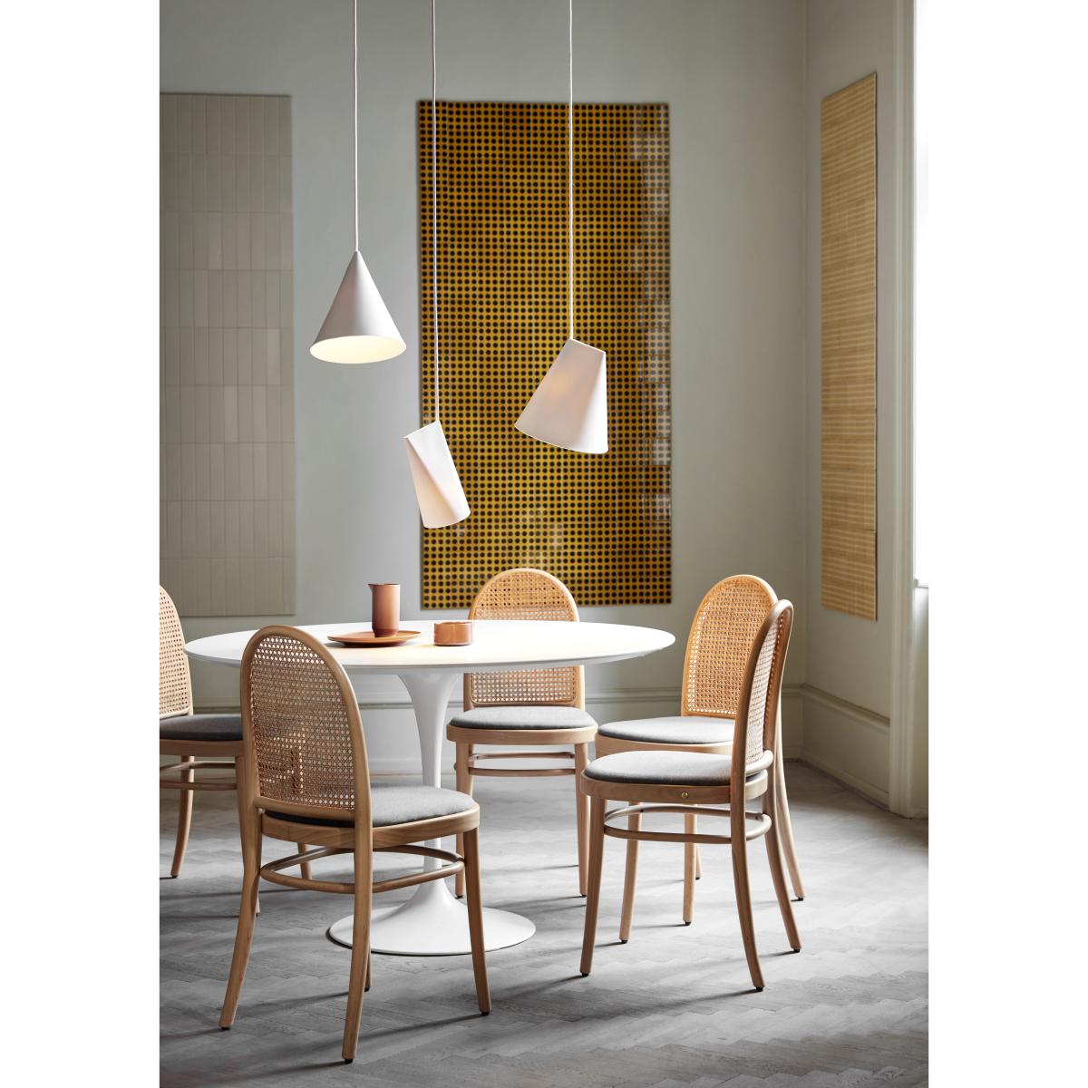 This ceramic ceiling light is a versatile piece that lends itself well to both contemporary and minimalist interiors. Its clean white finish and simple cone shape make it perfect for spaces aiming for a sleek, understated look, such as kitchens, dining areas, or even bedrooms. I particularly like pairing it with natural materials like wood or textured fabrics, as it balances modern simplicity with warmth. Practical styling tips include hanging it at varying heights in open-plan spaces to create visual interest or using it in multiples for a more sculptural ceiling feature. Its neutral tone ensures it seamlessly integrates without overpowering the room, making it a go-to choice for a subtle yet stylish touch.