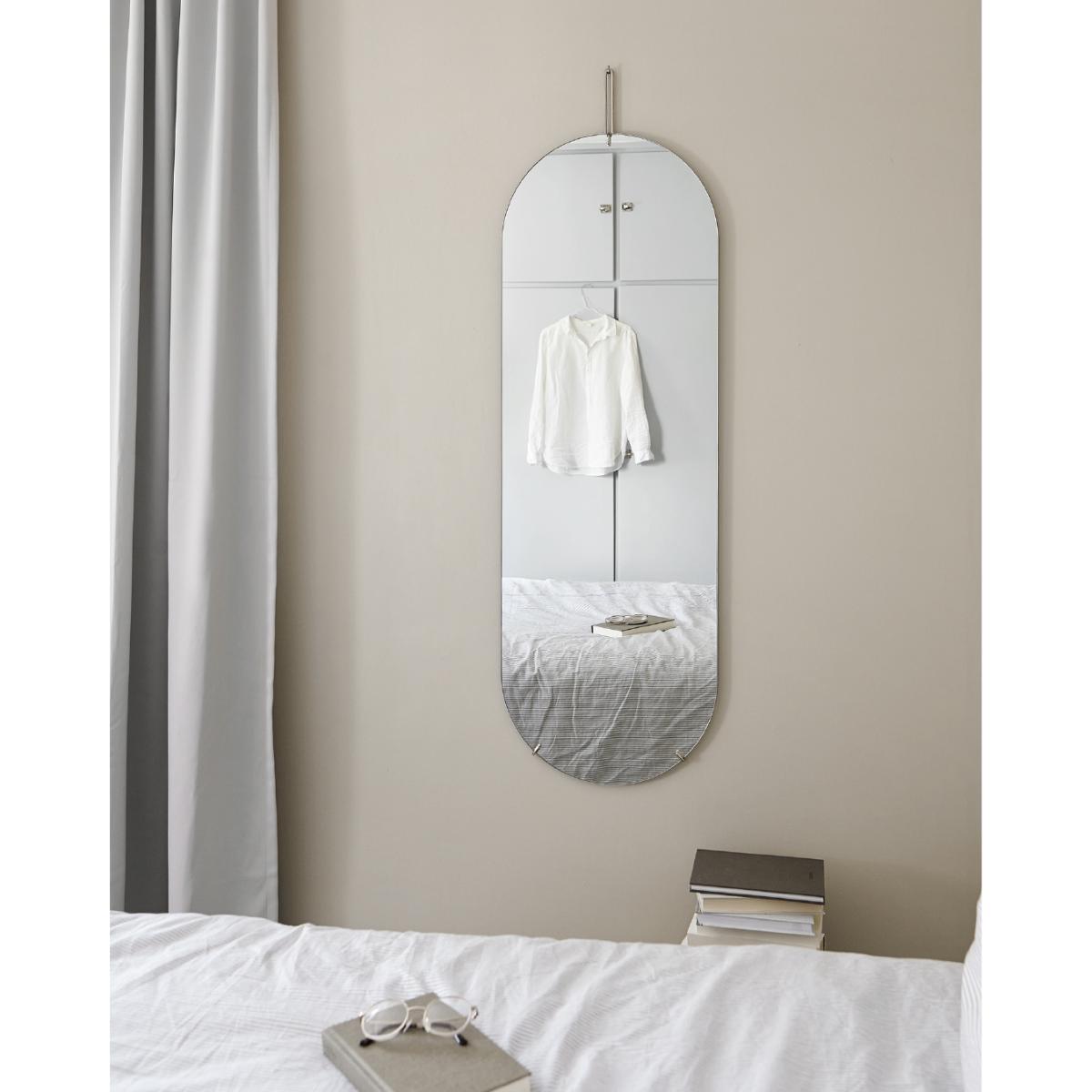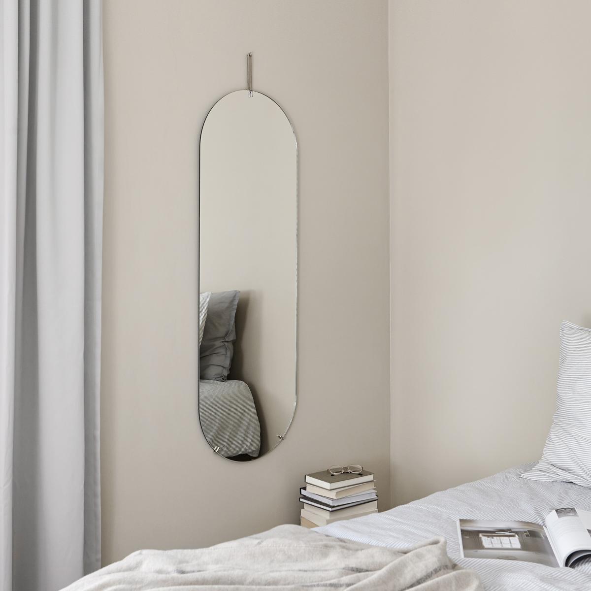 Moebe wall mirror 133 cm by Moebe consists of a mirror glass elegantly held in place by a thin metal frame. The minimalistic design highlights the material and shape, creating a timeless whole. With its tall, slender silhouette, the mirror fits perfectly in the hallway, bedroom, or dressing room – where it both enlarges the space and adds a modern, airy feel. Hung with a discreet hook for a floating impression.