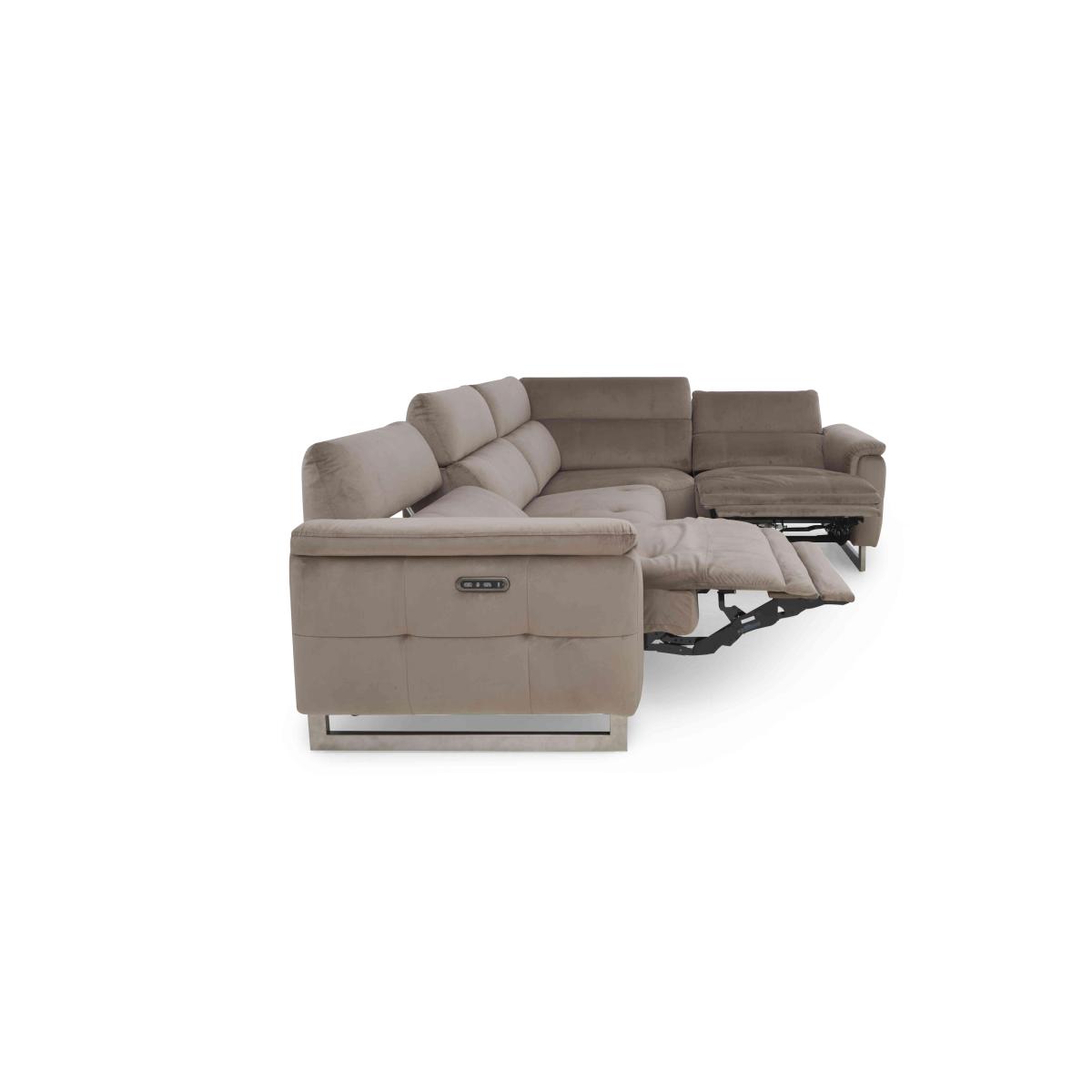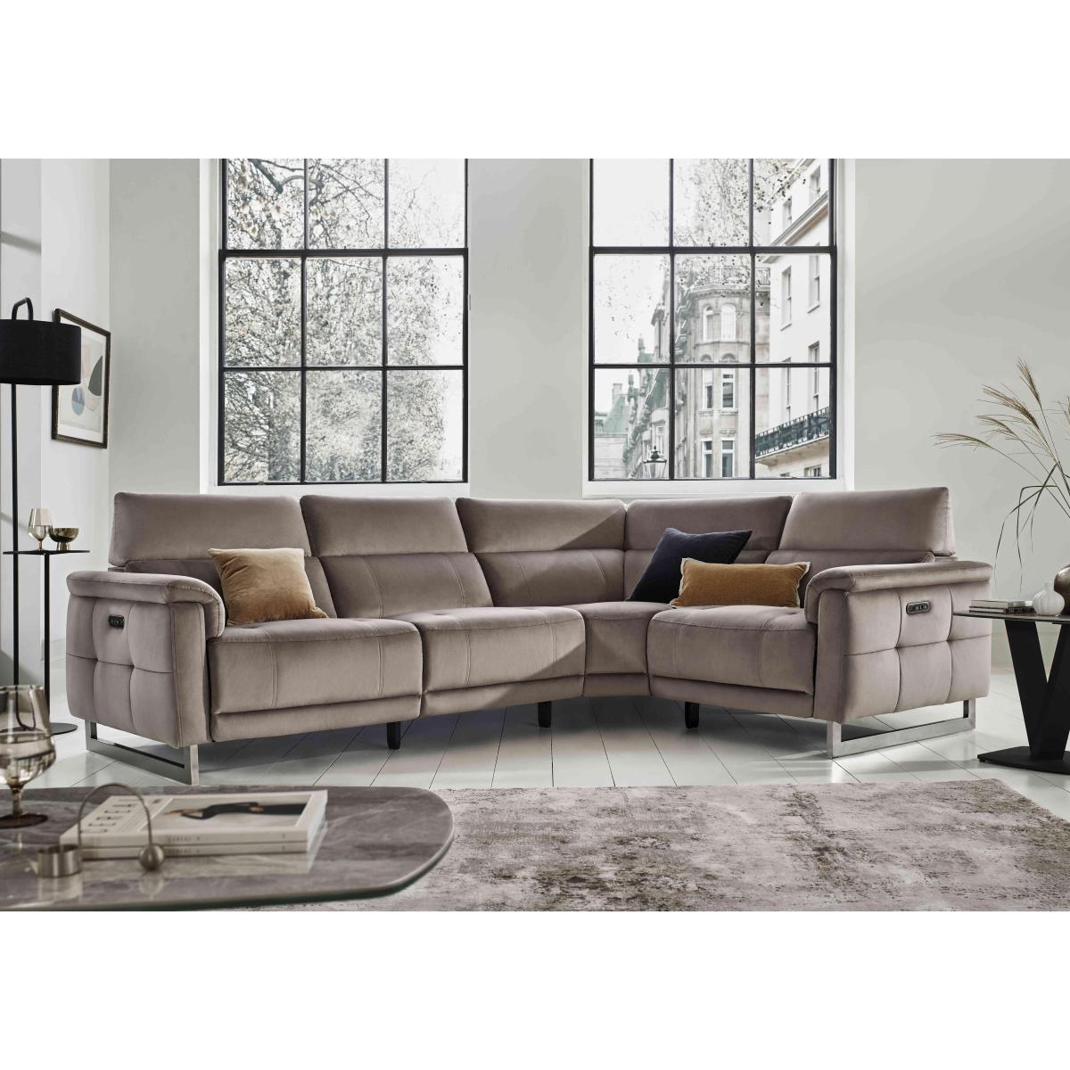 Ultra-modern style and ultra-modern comfort come together perfectly in our Moet range of power recliner sofas and armchairs. The look is bold and striking with deep seats, low-profile silhouettes and statement U-shaped metallic-finished legs. And with power recliners, perfect-positioning power telescopic headrests, pocket spring seat cushioning and USB charging, it’s so incredibly easy to relax in style. The collection includes a wide choice of sofa sizes, including corner sofas, as well as armchairs and footstools in 100% leather and fabric upholstery. Want to get even comfier? Opt for a Moet sofa with a smart console and enjoy wireless charging, cooling cup holders and more. Handmade exclusively for Furniture Village. With power recliners and power telescopic headrests, this modern corner sofa makes it so easy to relax. Everyone will love its cool style, generous comfort and pocket spring seat cushioning. Why you'll love it Fabulous fabric power recliner corner sofa with power telescopic headrests. All modern style, all modern comfort. Really relax with smooth power recliners and perfect-positioning power headrests. Seat cushions are pocket sprung for amazing comfort with support. Beautifully upholstered in a choice of fabrics and colours. Feature stitching and U-shaped legs with a silver metallic finish. Integrated USB charging ports. Handmade exclusively for Furniture Village. This fabric power recliner corner sofa with telescopic headrests is part of our Moet range. What you need to know Medium comfort level. Seat suspension: sinuous spring. Seat cushioning: pocket spring. Seat cushions are fixed. Back suspension: webbing. Back cushioning: fibre. Back cushions are fixed. Arm cushioning: foam and Dacron. Feet are removable. Please allow time for the recliner mechanism to ease. Minor gaps are necessary to ensure ease of motion and may be exaggerated depending on floor type. Some fabrics can show wear on areas of more use or in direct sunlight. Flattening and shading of heavy wear areas on pile fabrics is unavoidable. Clean regularly using a soft brush or vacuum with the curtain attachment. Deal with any spills promptly. Professional cleaning advised for oil- and grease-based stains. Please read our upholstery care guide for more advice.