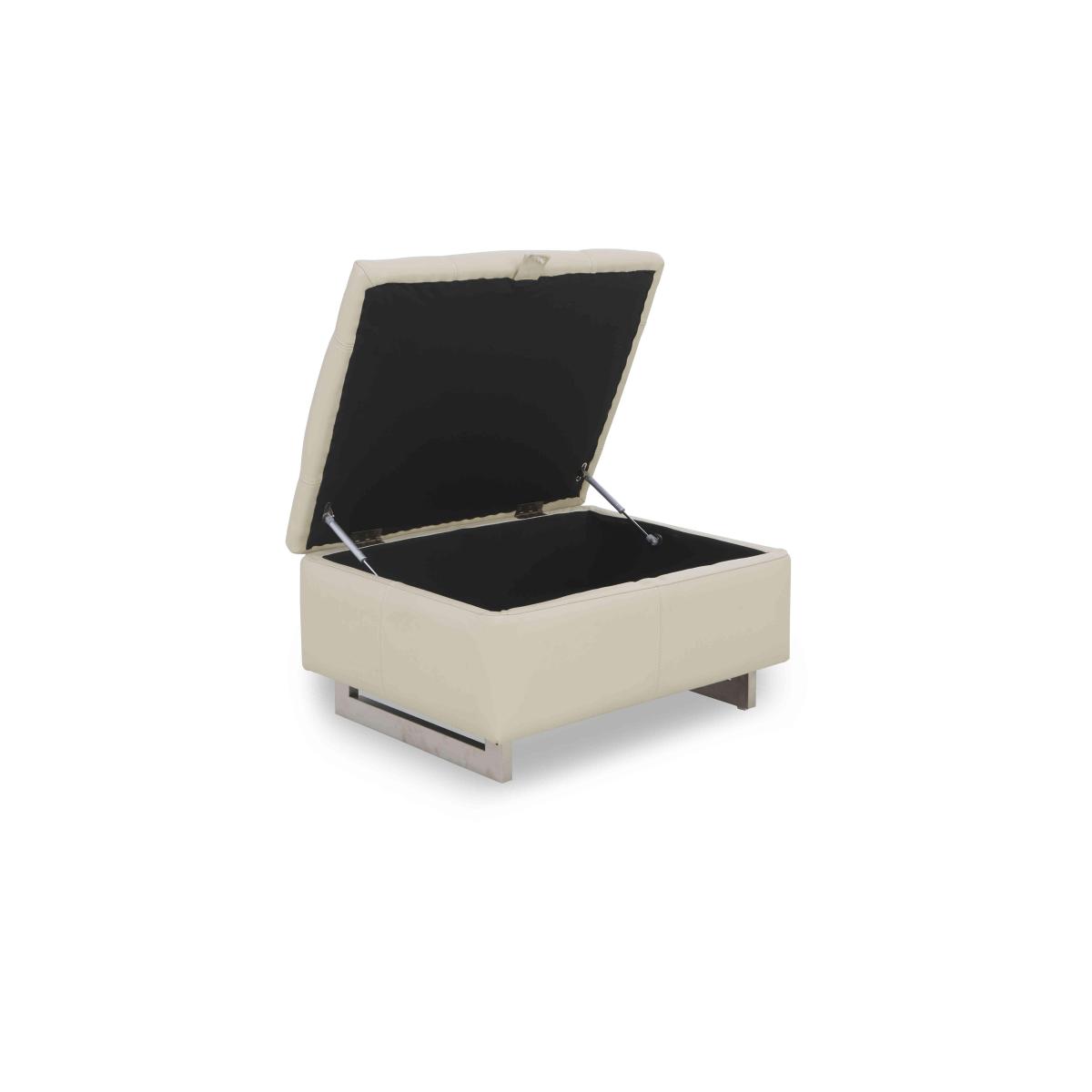 Ultra-modern style and ultra-modern comfort come together perfectly in our Moet range of power recliner sofas and armchairs. The look is bold and striking with deep seats, low-profile silhouettes and statement U-shaped metallic-finished legs. And with power recliners, perfect-positioning power telescopic headrests, pocket spring seat cushioning and USB charging, it’s so incredibly easy to relax in style. The collection includes a wide choice of sofa sizes, including corner sofas, as well as armchairs and footstools in 100% leather and fabric upholstery. Want to get even comfier? Opt for a Moet sofa with a smart console and enjoy wireless charging, cooling cup holders and more. Handmade exclusively for Furniture Village. Keep your living room as sleek and stylish as the sofas in our Moet range. This leather storage footstool has a clutter-collecting storage compartment and a comfy cushioned top. Why you'll love it So handy, so on trend – you’ll love this large leather storage footstool. All modern style, all modern comfort. Large hidden storage compartment for all your living room bits and pieces. Footrest, extra seat and occasional coffee table all in one. Beautifully upholstered in a choice of 3 leather grades and a range of stylish colours. Feature stitching, buttoning and U-shaped legs with a silver metallic finish. Handmade exclusively for Furniture Village. This large leather storage footstool is part of our Moet range. What you need to know Cushioning: foam. Feet are removable. Leather has unique marks and characteristics with variation in colour and texture. Leather softens with use. Smoothing the tops of leather cushions prevents signs of visual comfort. Please read our upholstery care guide for more advice.