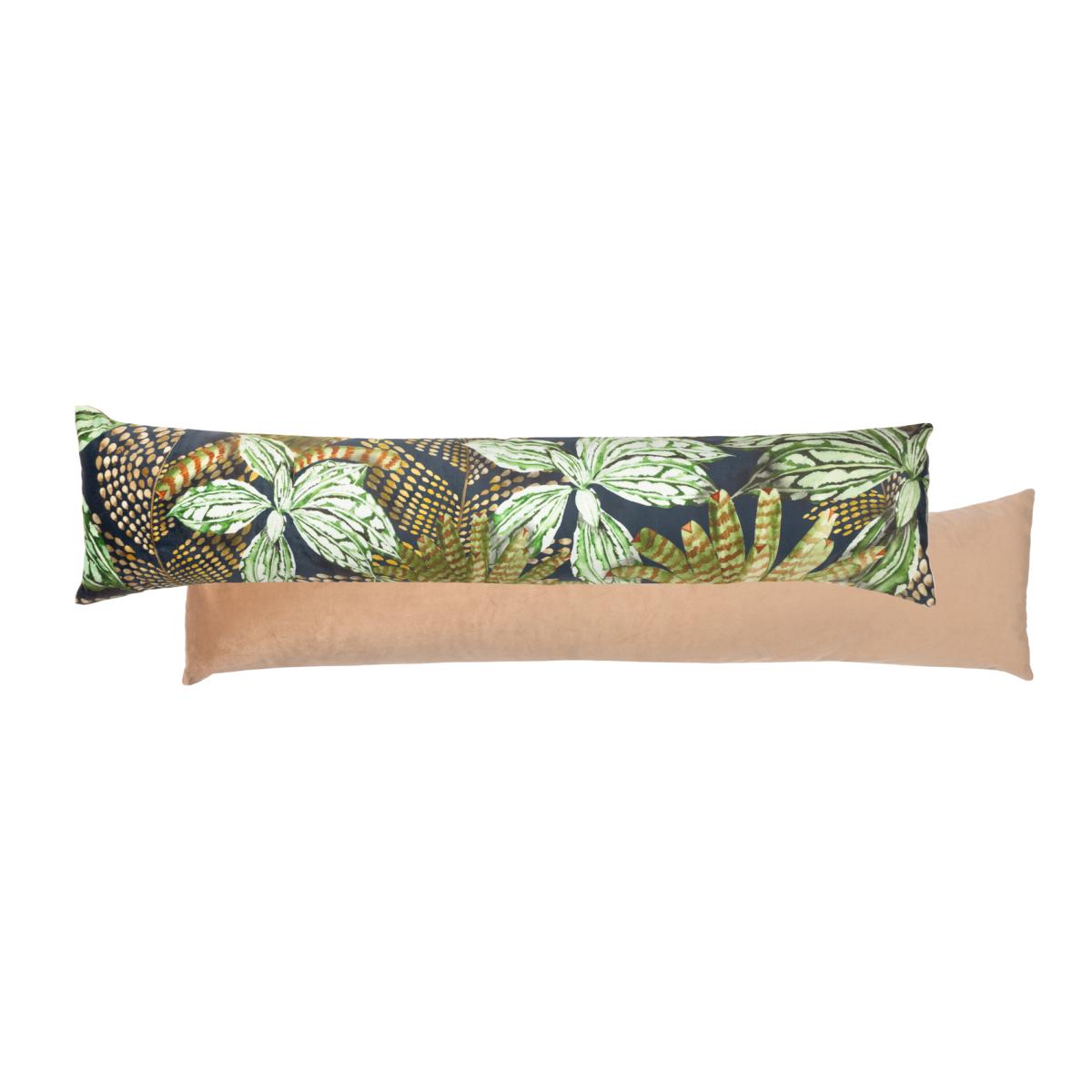 An eye-catching draught excluder which will help keep the cold out this winter. Designed with soft printed velvet, it features large, bright, bold stylised foliage, surrounded by a contrasting background. Finished with a soft plain contrast velvet reverse, knife edged trim and a zip fastening, so the cover can be easily removed and washed. Ideal for bringing the natural world to us in all seasons.