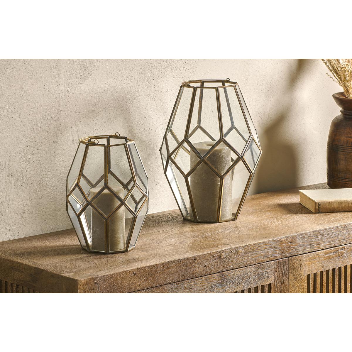 We love the asymmetric design of these brass lanterns. The rich coloured brass gives them an antique finish, each one is hand welded to fit the individual glass windows. This timeless lantern looks beautiful in any setting.