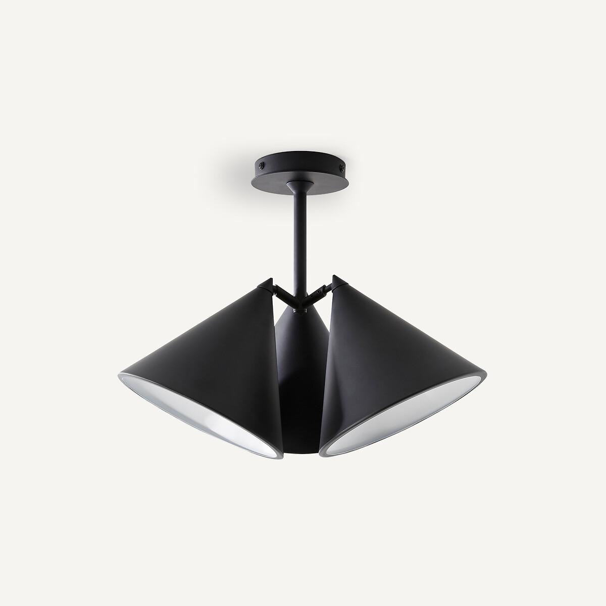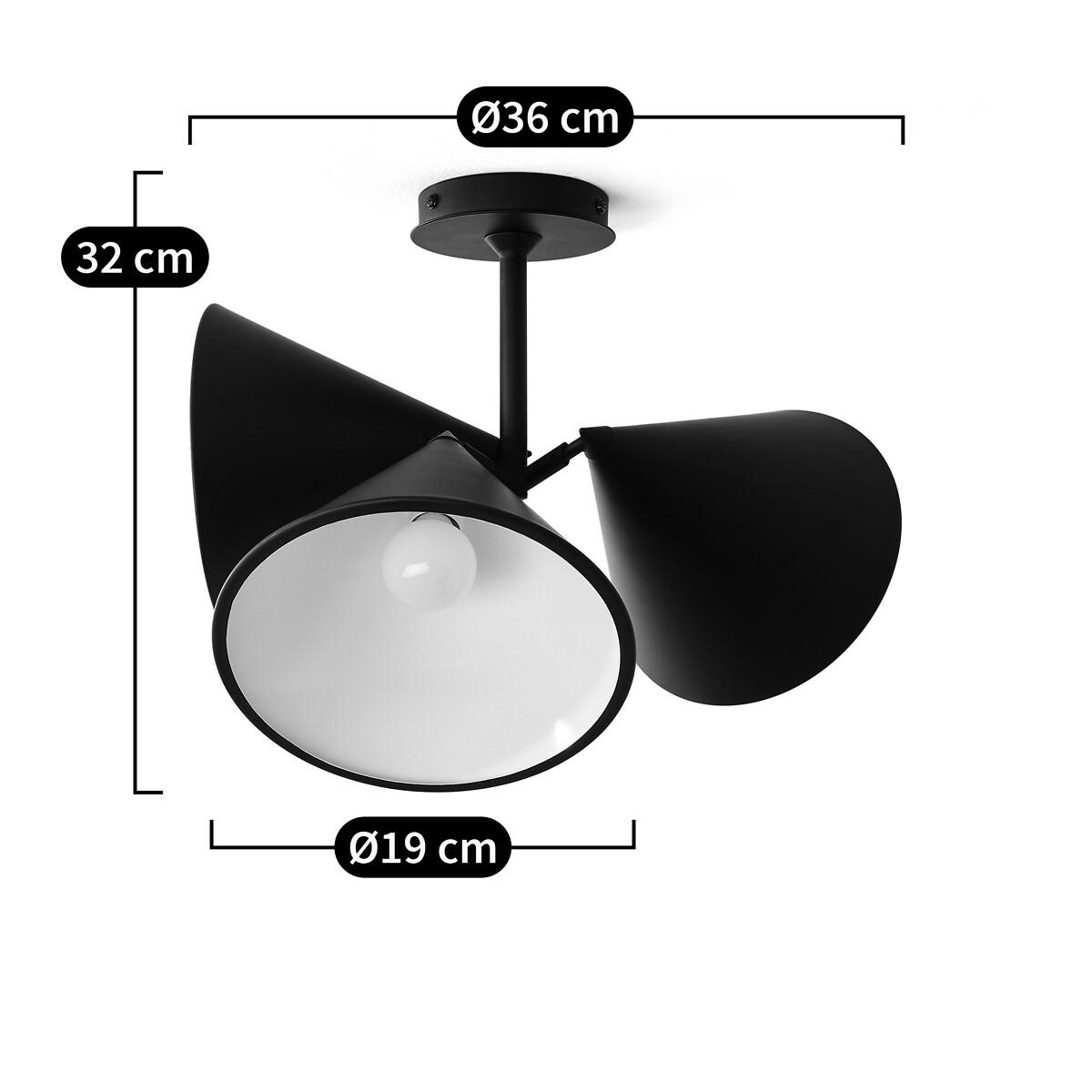 A refined, simple and aesthetic design. The Moke range is part of the AMPM Iconics: exclusive creations, anchored in the brand's DNA.Various possible positions : the cones can be individually adjusted in several ways for multiple graphic effects. Product Details • Iron with black, mocha or grey epoxy • Slightly rolled edge iron finish • Epoxy-finish iron support and base • 120° adjustable conical reflector, white epoxy interior • 3 E14 sockets for bulb (not supplied) :LED 4W maxDimensions Overall • Width: 37cm • Height: 33.2cm. Cone • Diameter: 18.5cm • Height: 16.5cm. Base • Diameter: 11cm/4.5" • Height: 2cm/1"Dimensions and weight of parcel1 parcel • W41 x H41 x D28.5cm, 2.3kg