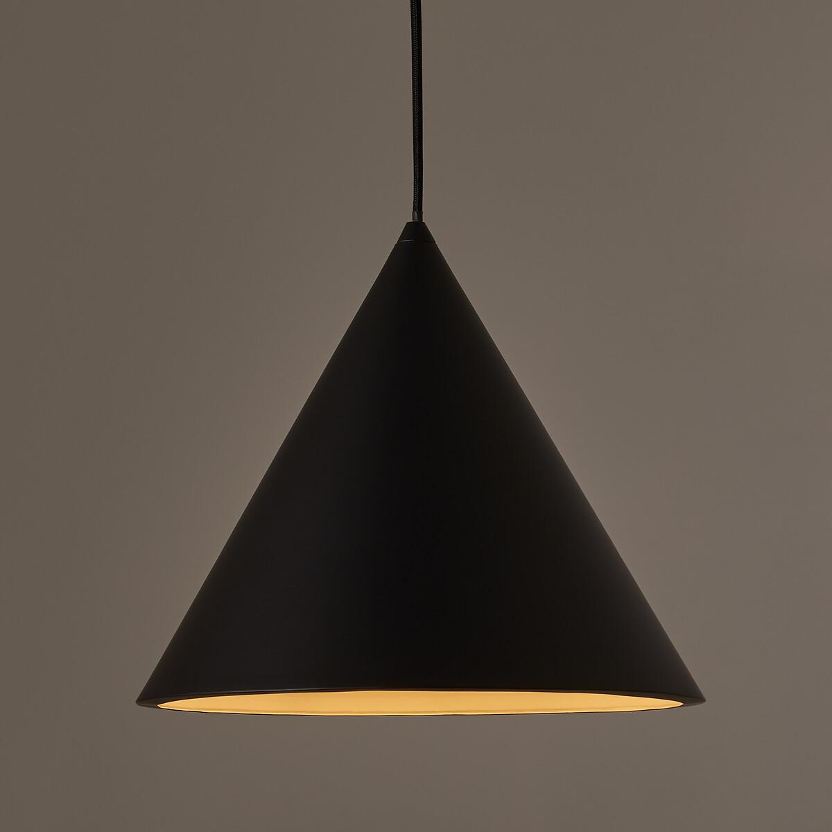 Aesthetics, refinement & sobriety. The Moke range is part of the AMPM Iconics: exclusive creations, anchored in the brand's DNA.With a sculptural, radical and timeless aesthetic, the Moke range is available in black epoxy metal or matte mocha finish. Wall lamp, table lamp, floor-reading lamp, suspension and ceiling lamp... each light has a movable diffuser to direct the light where you want it: targeted lighting for reading or subdued diffusion. Iconics by AMPM.New to this range... the XL format ceiling light with a diameter of 30cm. Product Details • Black epoxy iron or matte mocha finish • Slightly rolled edge iron finish • Epoxy-finish iron support and base • Conical reflector, white epoxy interior • Adjustable height • E27 socket for 8W max LED bulb, not included. Dimensions • Cone: Diameter 30 x Height 27cm • Max cable length: 1200cm • Ceiling plate: Diameter 10cm • Thickness: 2cm. Dimensions and weight of parcel1 parcel • 36 x 36 x 31.5cm, 1.6kg