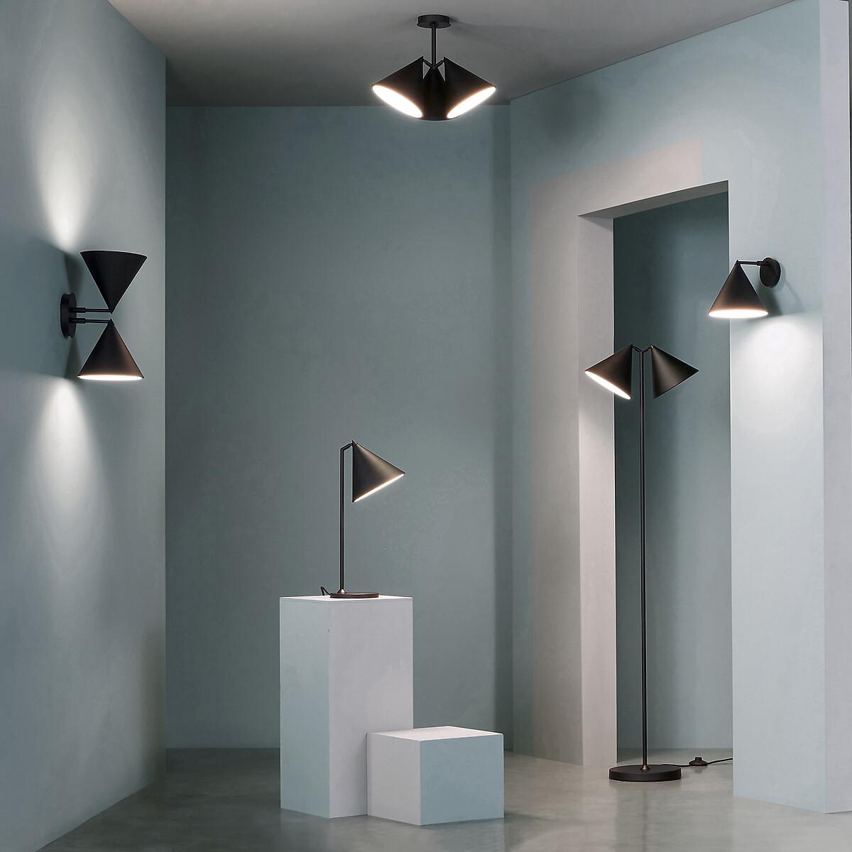 Aesthetics, refinement & sobriety. The Moke range is part of the AMPM Iconics: exclusive creations, anchored in the brand's DNA.Product Details • Multiple positions possible: the plate can be placed vertically or horizontally and the cones can be oriented in several ways for multiple effects. • Black epoxy iron or matte mocha finish • Slightly rolled edge iron finish • Epoxy-finish iron support and base • Conical shade with 120° movement, interior finished with white epoxy paint • E14 socket for 4W max LED bulb, not included • Compatible with energy class A-E bulbs. Dimensions • Width: 21cm • Height: 18cm • Depth: 19cm. Dimensions and weight of parcel1 parcel • 26 x 26 x 24cm, 0.8kg