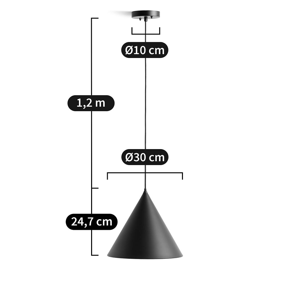 Aesthetics, refinement & sobriety. The Moke range is part of the AMPM Iconics: exclusive creations, anchored in the brand's DNA.With a sculptural, radical and timeless aesthetic, the Moke metal pendant light is available in an outdoor version. Product Details • Iron with black epoxy finish • Slightly rolled edge iron finish= • Internal frosted glass diffuser • Epoxy-finish iron support and base • Conical reflector, white epoxy interior • Adjustable height • E27 socket holder, 8W LEDQuality Info • The IP54 standard guarantees reinforced protection against splashing water. Lights bearing this standard are suitable for damp rooms or for outdoor use..Dimensions • Cone: Diameter 30 x Height 24.7cm • Internal glass diffuser: Diameter 26 x H14cm • Max cable length: 1200cm • Ceiling plate diameter 10cm. Thickness: 2cm. Dimensions and weight of parcel 1 parcel • 35 x 35 x 30cm 3.2kg