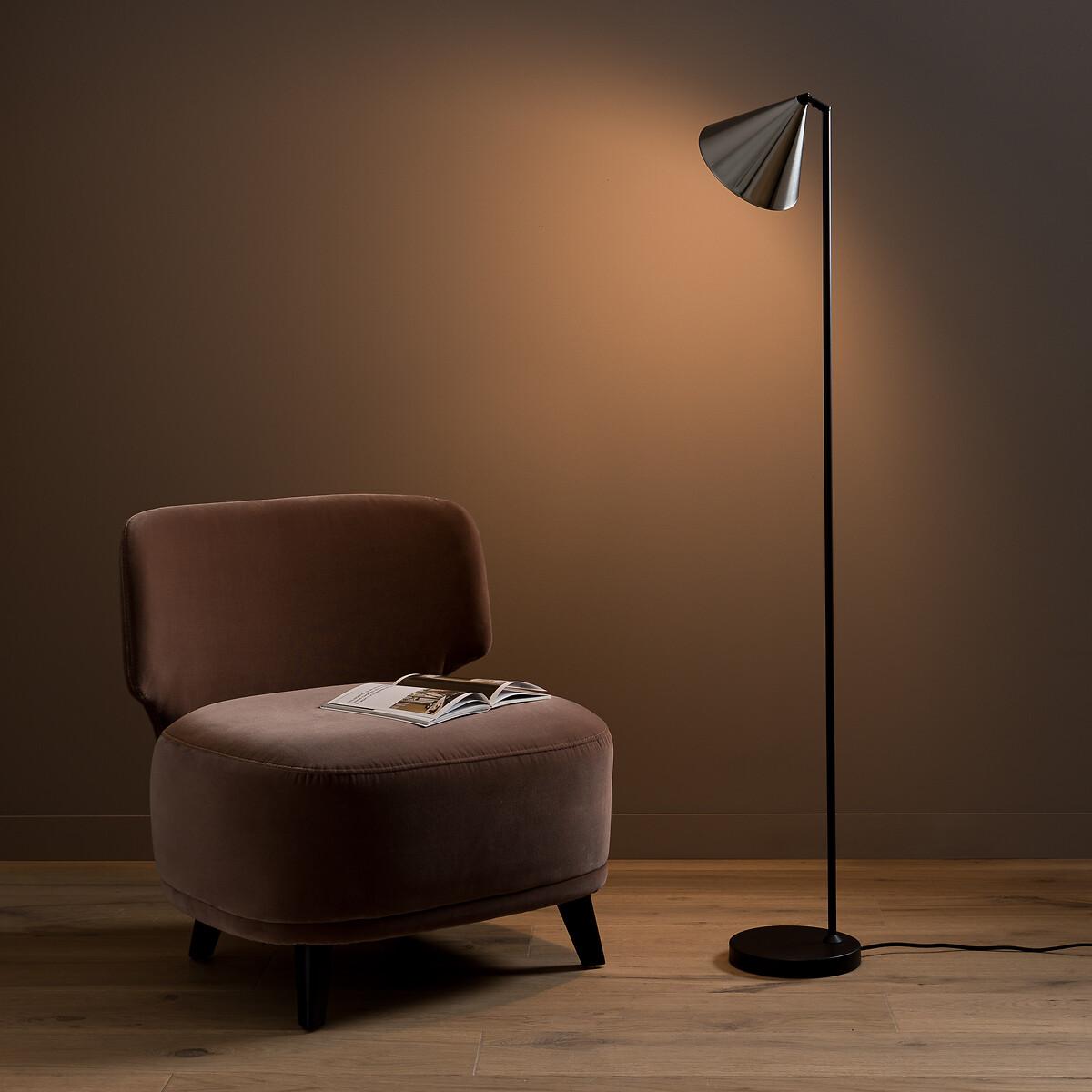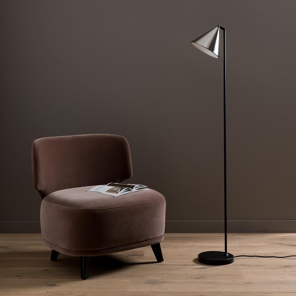 Aesthetics, refinement & sobriety. The Moke range is part of the AMPM Iconics: exclusive creations, anchored in the brand's DNA.With a sculptural, radical and timeless aesthetic, the Moke range comes in 3 finishes: black epoxy metal, matte mocha or brushed nickel finish. Wall lamp, table lamp, floor-reading lamp and ceiling lamp... each light has a movable diffuser to direct the light where you want it. New to this range, a reading lamp whose height has been specifically designed to provide maximum reading comfort to a person seated in an armchair. Product Details • Black epoxy iron, matte mocha or brushed nickel finish • Slightly rolled edge iron finish • Epoxy-finish iron support and base • Adjustable conical reflector, white epoxy interior • E14 socket for compact fluorescent bulb, max. 8W (not included) • Compatible with energy class A-E bulbs. Dimensions • Width: 22cm • Depth: 20cm • Height: 131cm • Cone: Diameter 19cm • Base : Diameter 25cm, thickness 2cm • Weight: 4.8kgDelivery:. Sold pre-assembled. Available for home delivery. Dimensions and weight of parcel1 parcel • 26 x 28 x 138cm, 6.2kg
