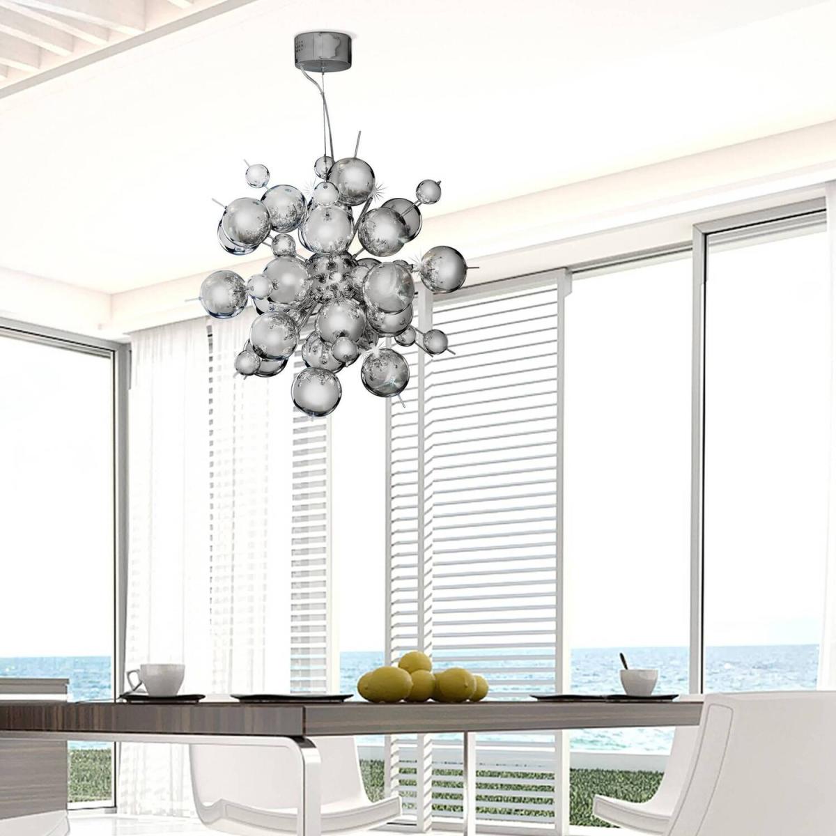 The Molecule pendant is a fitting which will add class and style to any room. The chrome finish adds a shine, allowing the light to reflect throughout the room. The chrome balls give the fitting a modern feel which will match any colour scheme. Be it kitchen, or modern living or dining room, the molecule chrome pendant is a positive addition to its surroundings, while proving to be a great light source.
