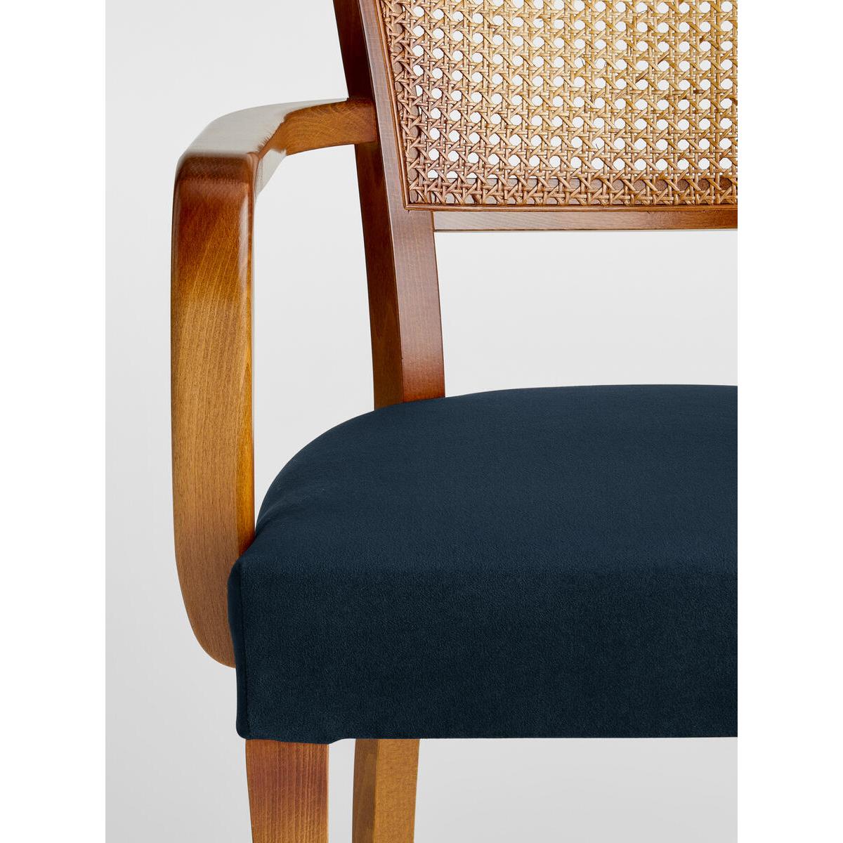 Molina Arm Chair Cane Back Velvet, Indigo UK