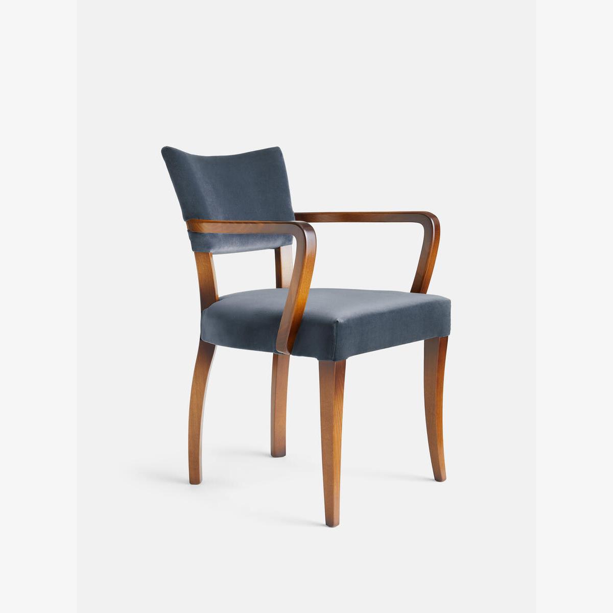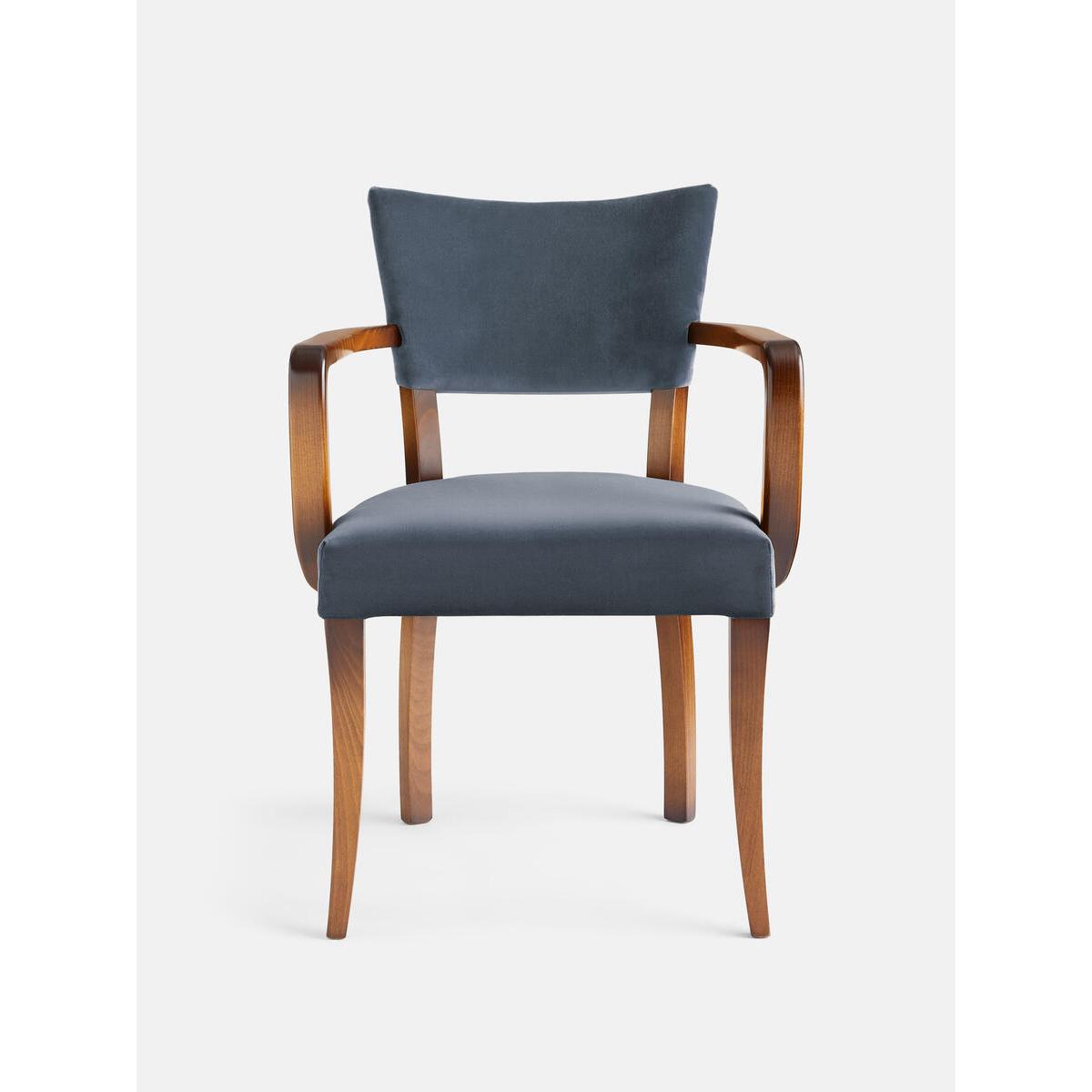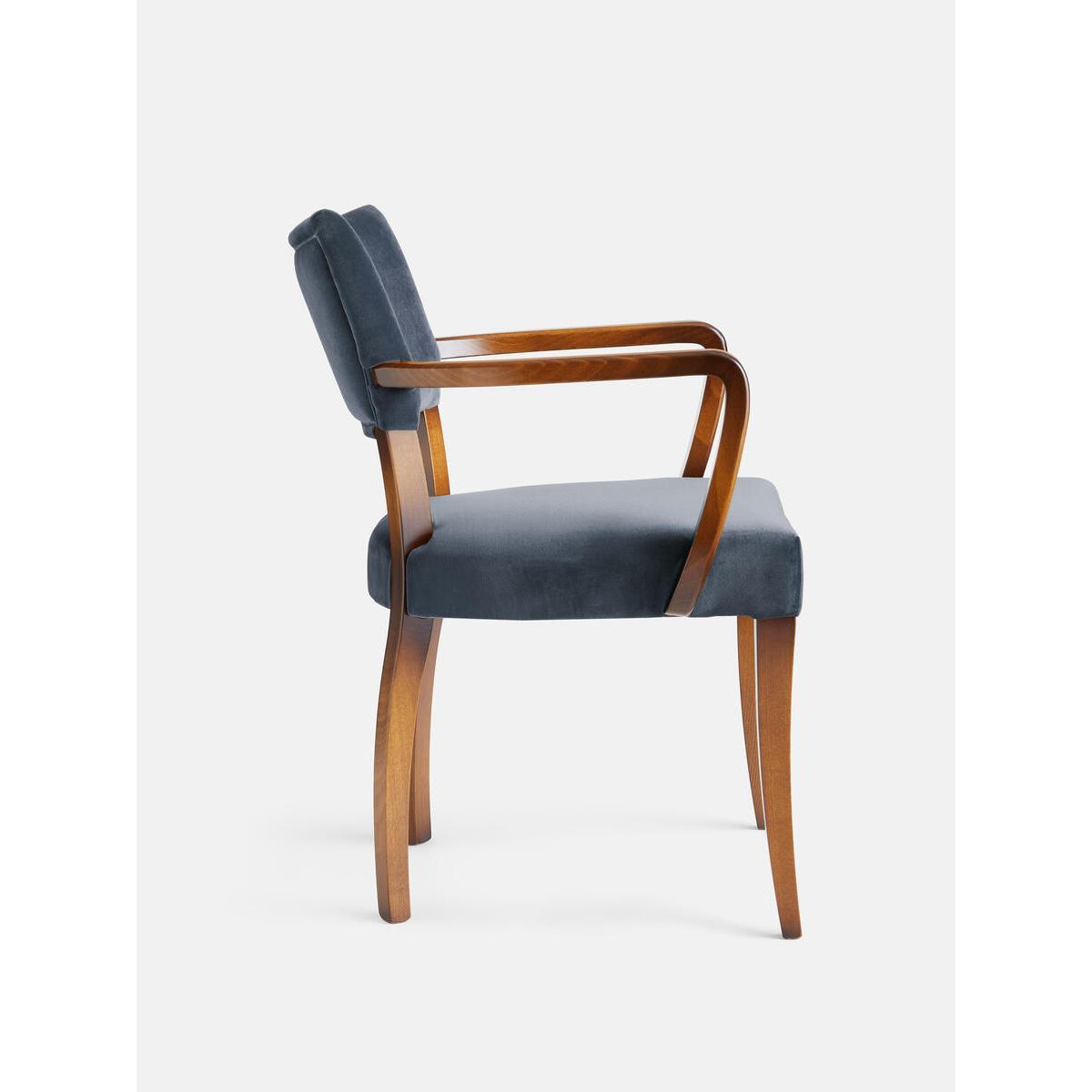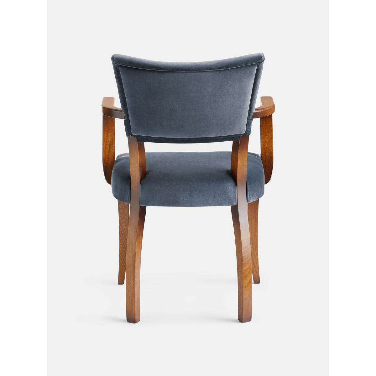 A House hero, you'll find our upholstered Molina dining chairs in many of our Houses, including High Road House and Soho House Berlin, as well as a vintage version in Kettner's. The set is crafted in Italy and upholstered in cotton velvet. Dining chairs with upholstered seat and back Upholstered in grey blue Beech wood frame Inspired by the vintage dining chairs at Kettner's
