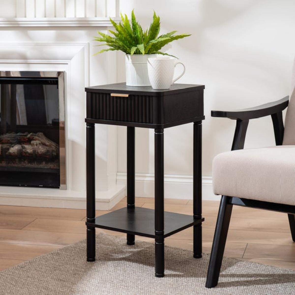 I love the Molly side table for its sleek, versatile design that can effortlessly complement both modern and traditional interiors. Its compact size makes it perfect for small living spaces or beside a sofa or armchair, providing functional surface area without feeling cluttered. It works particularly well in Scandinavian-inspired schemes or monochrome interiors, where its black finish adds a sophisticated touch. For styling tips, consider layering with a small lamp, a decorative tray, or some favourite books to create an inviting corner. Its minimalist aesthetic also makes it adaptable for use in bedrooms or hallways, offering a practical yet stylish addition to various rooms.