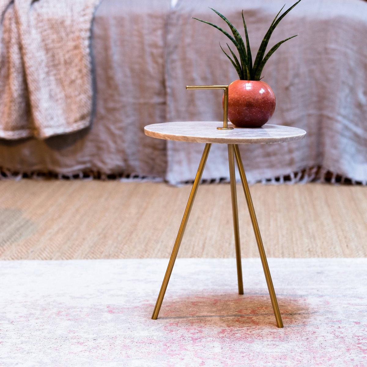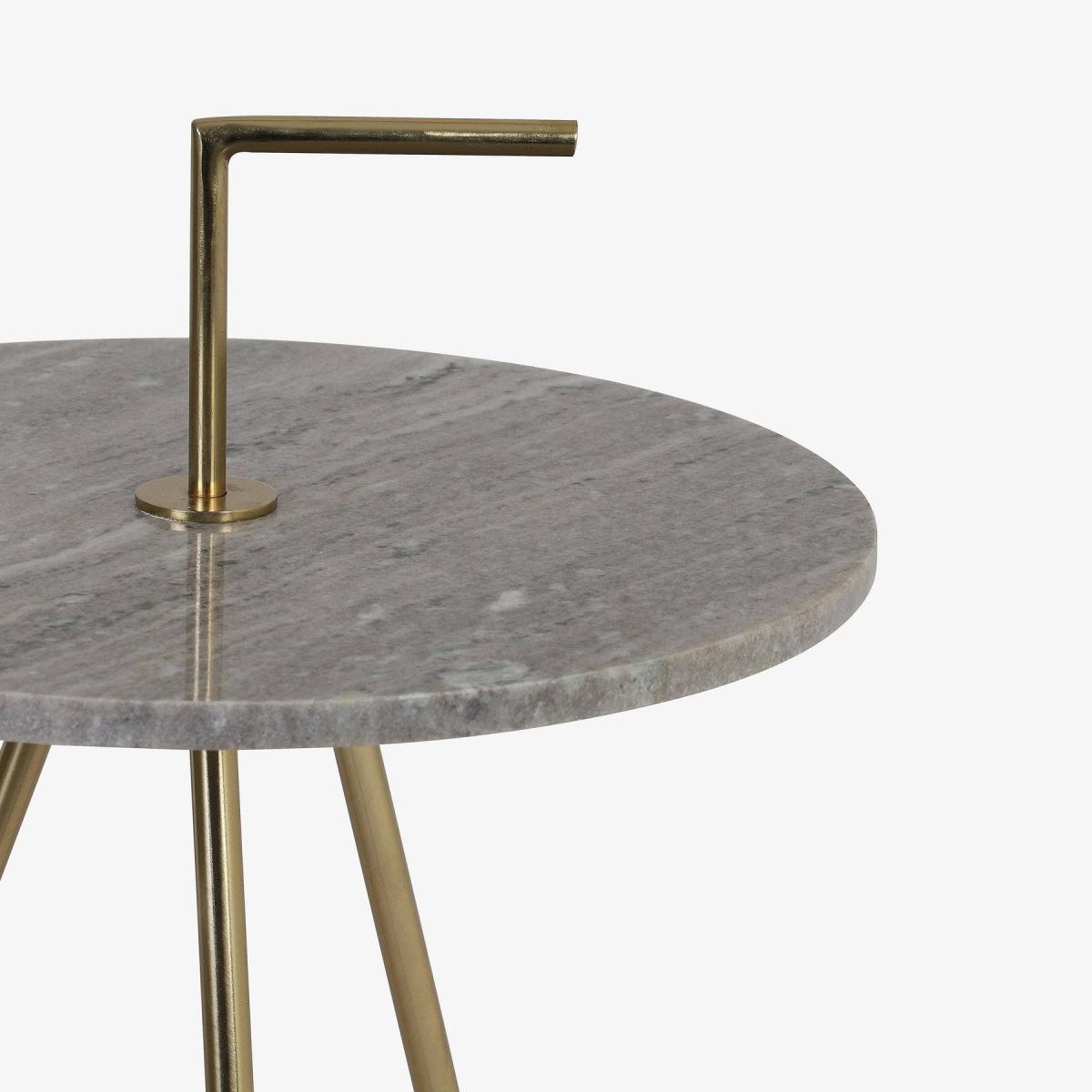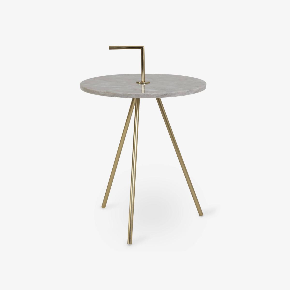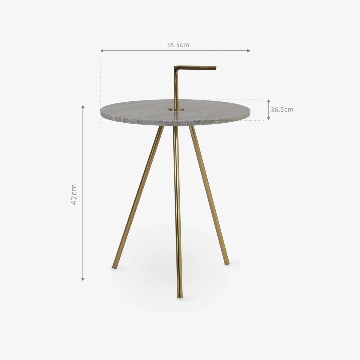 When you want to modernise a space, our portable Molta marble side table is an ideal surface for decorative uses. This stylish occasion table has streamlined dimensions and adds a jolt of glamour to even the smallest spaces. Designed with a distinctive handle top, marble surface, and bronze tripod legs, its modern aesthetic suits various interiors. Portable and practical, it's the perfect table to move around the house whenever you need an extra surface. Molta fits into tight spaces and can be placed next to low lounge furniture such as daybed or sofa.