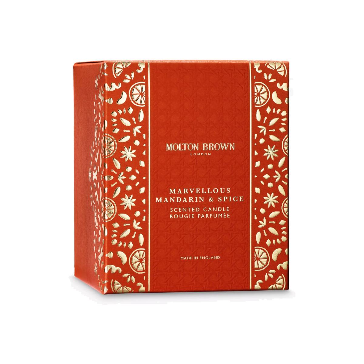 Capturing the essence of Christmas baking with loved ones, our scented candle weaves a festive trail of glowing mandarin, rich cinnamon and dried fruits for a splendid, heart-warming ambience; its elegant gold-foil design spotlights all these delightful ingredients. The fragrance: The Fragrance Scattered ingredients gloriously strewn across the Christmas kitchen table; jewels of wintry citrus and warm, deep spices. A slightly tart swirl of sparkling mandarin zest unravels into the golden vibrancy of lively ginger. Well seasoned with tasting notes of ground cinnamon, crunchy clusters of seedy dried fruits and an aromatic grating of earthy nutmeg. Splendidly stir up a festive feast for the senses; reimagine a magnificent seasonal tradition. Scrumptious. Heart-warming. Resplendent.