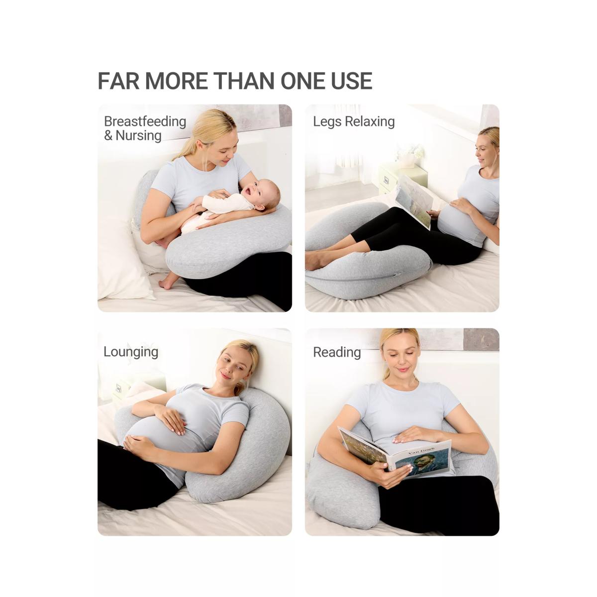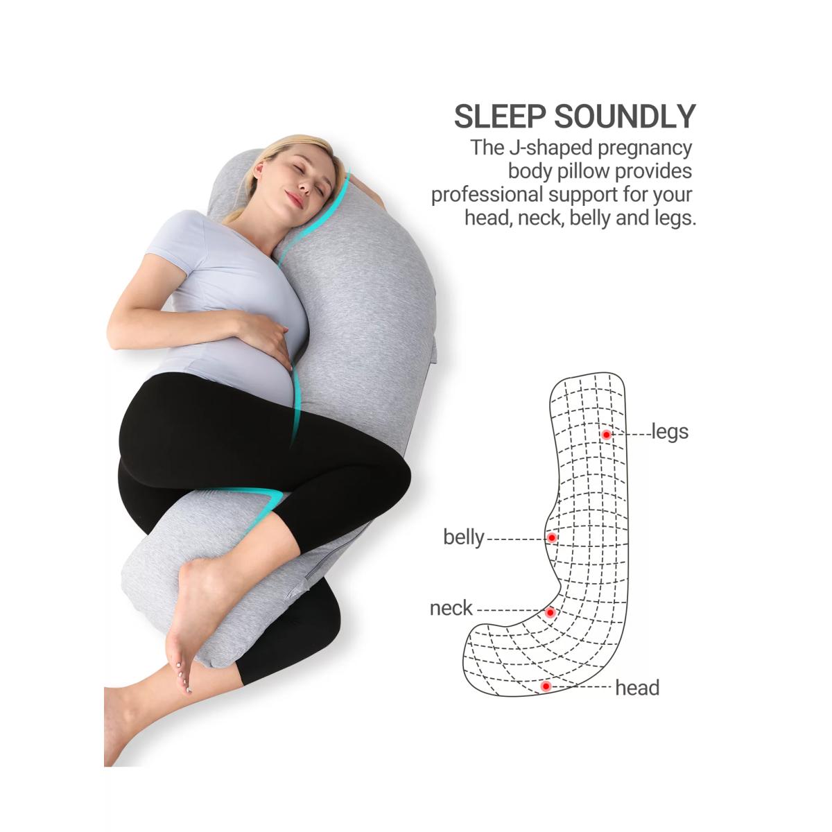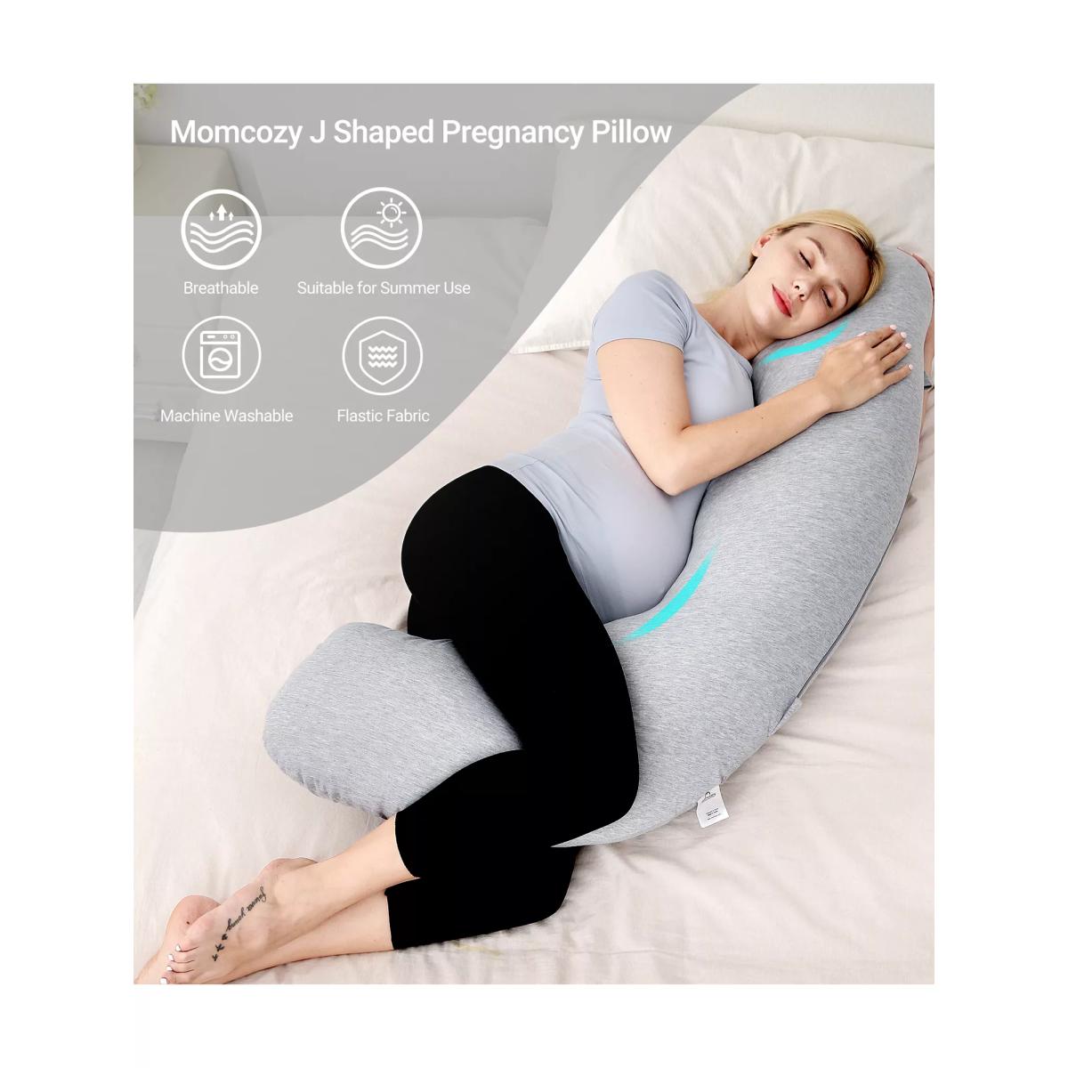 The J-Shaped Maternity Body Pillow by Momcozy is a versatile and comfortable maternity pillow that provides support to your back, belly, legs, and neck all in one. The pillow is designed to provide full body support, making it the perfect choice for mothers-to-be who need extra comfort and cushioning during pregnancy. The pillow cover is made with premium long silk cotton, which provides the perfect balance between comfort and support for your full body. It is durable enough to keep its shape after weight is placed on it night after night. Key Features: J-Shaped Design - The pillow’s unique J-shape design supports all the body parts that need to be supported during pregnancy. Versatile C-Shaped Support - Enjoy additional C-shaped support that cradles your back, belly, legs, and neck, adapting to your body's needs. Luxurious Long Silk Cotton Filling - Filled with premium long silk cotton, our pillow delivers an ideal blend of plush comfort and full-body support. Resilient Construction - Designed for durability, our pillow retains its shape consistently, providing reliable support every night. Hassle-Free Maintenance - With a machine-washable removable cover, keeping your pillow fresh and clean is effortless. Multipurpose Use - Beyond pregnancy, our pillow serves as an excellent aid during nursing or recovery from an injury. Warning: Do not place any part of this product in a crib, baby bed, bassinet, cradle, enclosure, or playpen as it could be a suffocation hazard. Do not place this product anywhere a baby may sleep.
