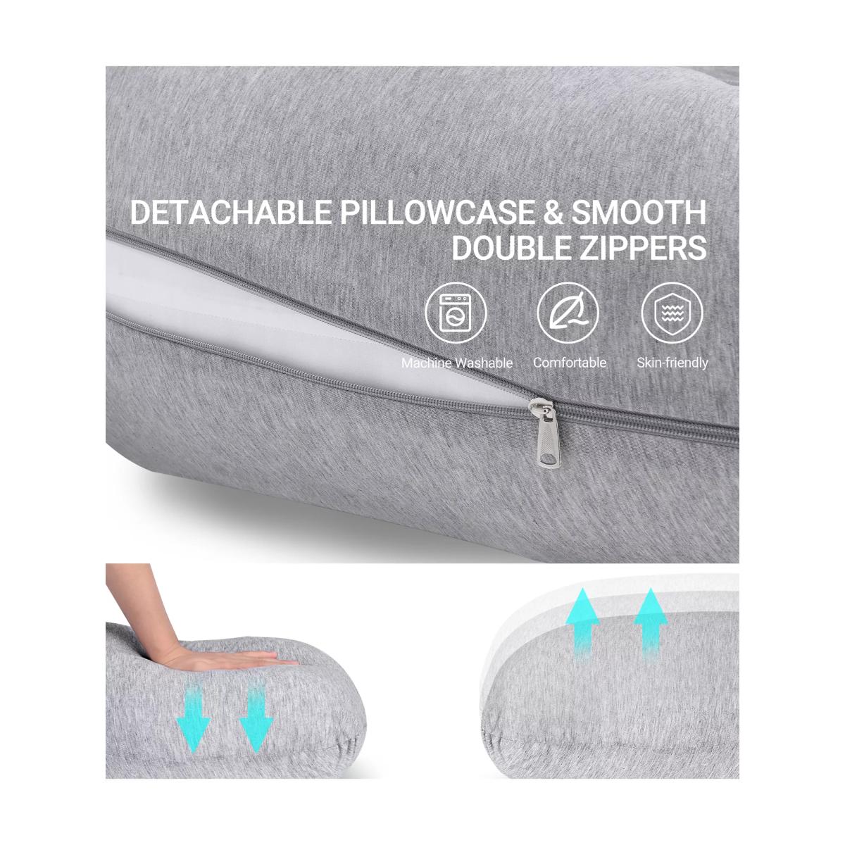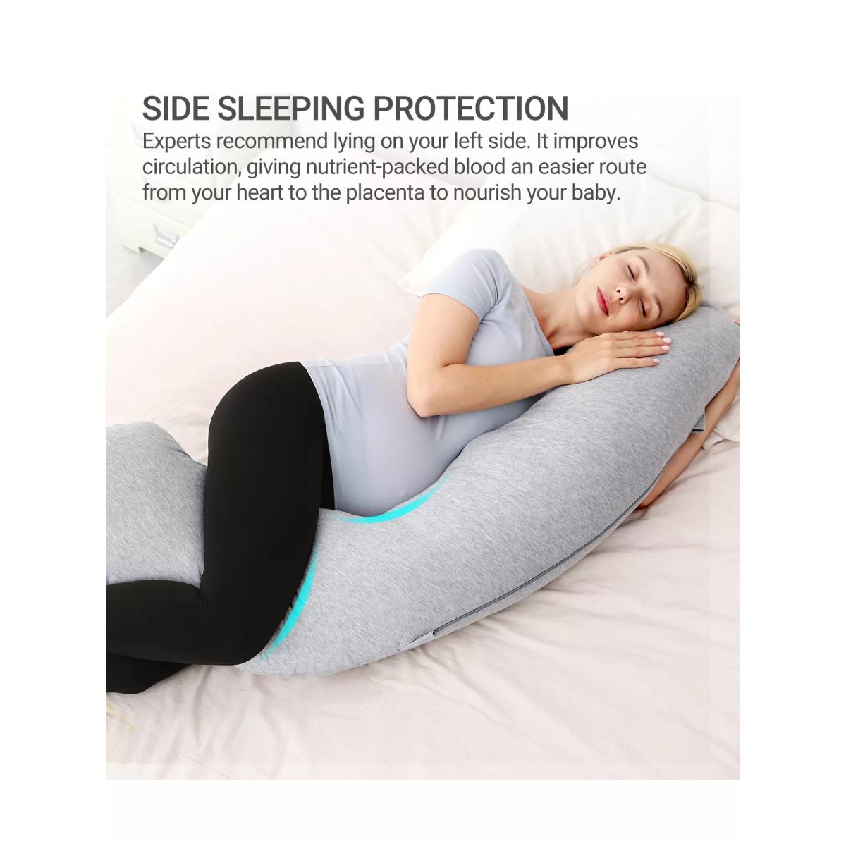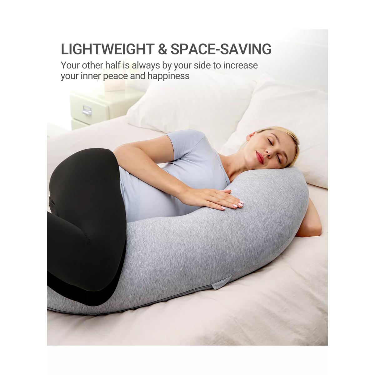 The J-Shaped Maternity Body Pillow by Momcozy is a versatile and comfortable maternity pillow that provides support to your back, belly, legs, and neck all in one. The pillow is designed to provide full body support, making it the perfect choice for mothers-to-be who need extra comfort and cushioning during pregnancy. The pillow cover is made with premium long silk cotton, which provides the perfect balance between comfort and support for your full body. It is durable enough to keep its shape after weight is placed on it night after night. Key Features: J-Shaped Design - The pillow’s unique J-shape design supports all the body parts that need to be supported during pregnancy. Versatile C-Shaped Support - Enjoy additional C-shaped support that cradles your back, belly, legs, and neck, adapting to your body's needs. Luxurious Long Silk Cotton Filling - Filled with premium long silk cotton, our pillow delivers an ideal blend of plush comfort and full-body support. Resilient Construction - Designed for durability, our pillow retains its shape consistently, providing reliable support every night. Hassle-Free Maintenance - With a machine-washable removable cover, keeping your pillow fresh and clean is effortless. Multipurpose Use - Beyond pregnancy, our pillow serves as an excellent aid during nursing or recovery from an injury. Warning: Do not place any part of this product in a crib, baby bed, bassinet, cradle, enclosure, or playpen as it could be a suffocation hazard. Do not place this product anywhere a baby may sleep.