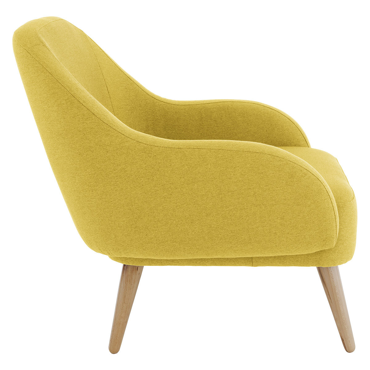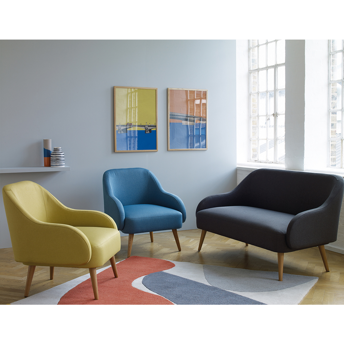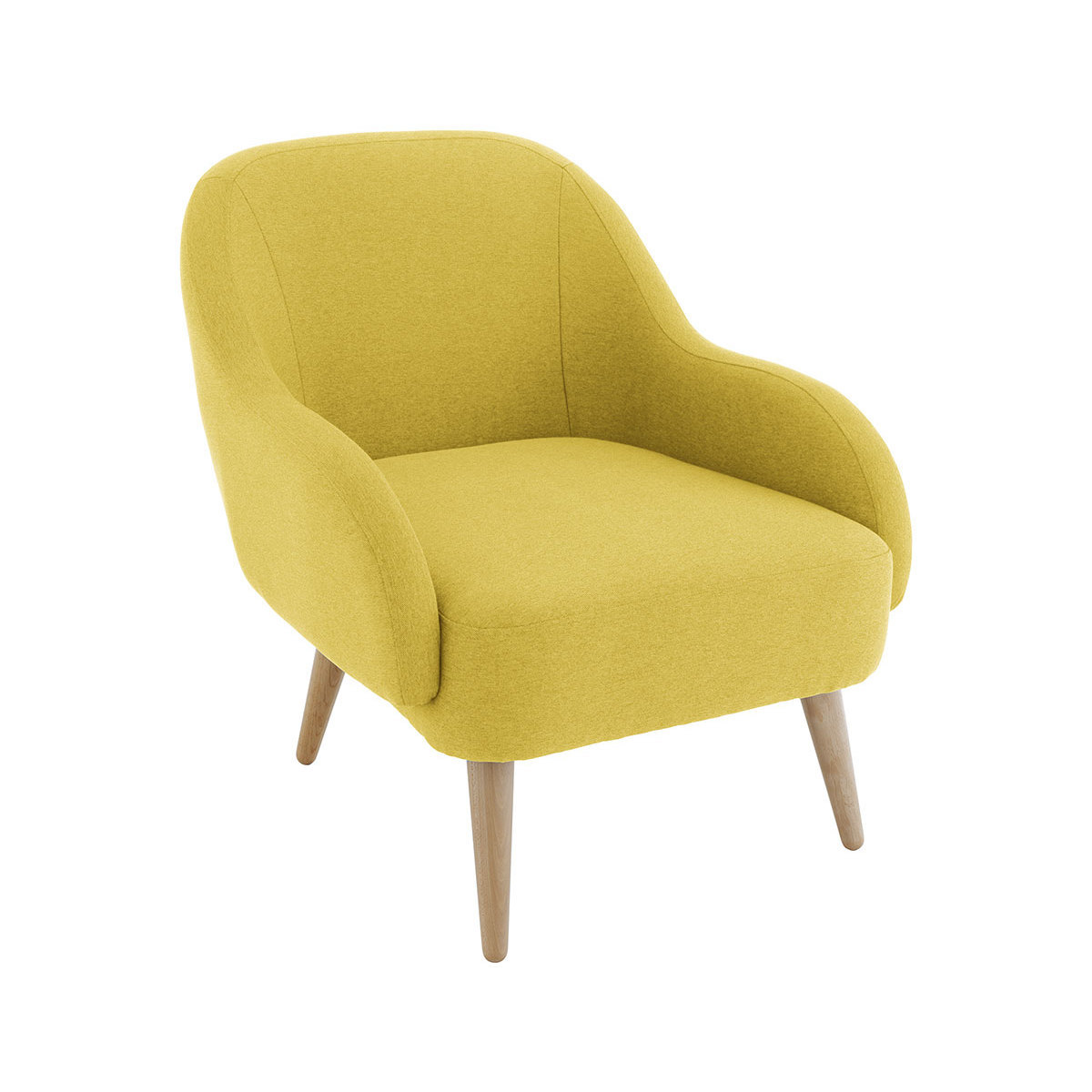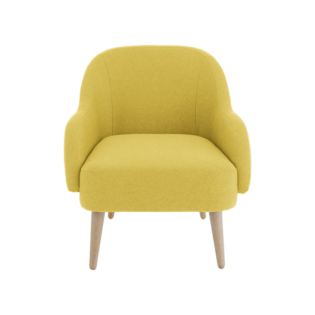 With its rounded edges and gently reclining back, the Momo saffron yellow fabric armchair invites you to relax and unwind. The armchair is a retro-inspired design with compact proportions, making it perfect for smaller spaces. Designed by our in-house team, the sofa features beech legs and comes in a variety of colours. A co-ordinating Momo 2 seater sofa is also available. Part of the Momo collection, available in various colour and fabric options.