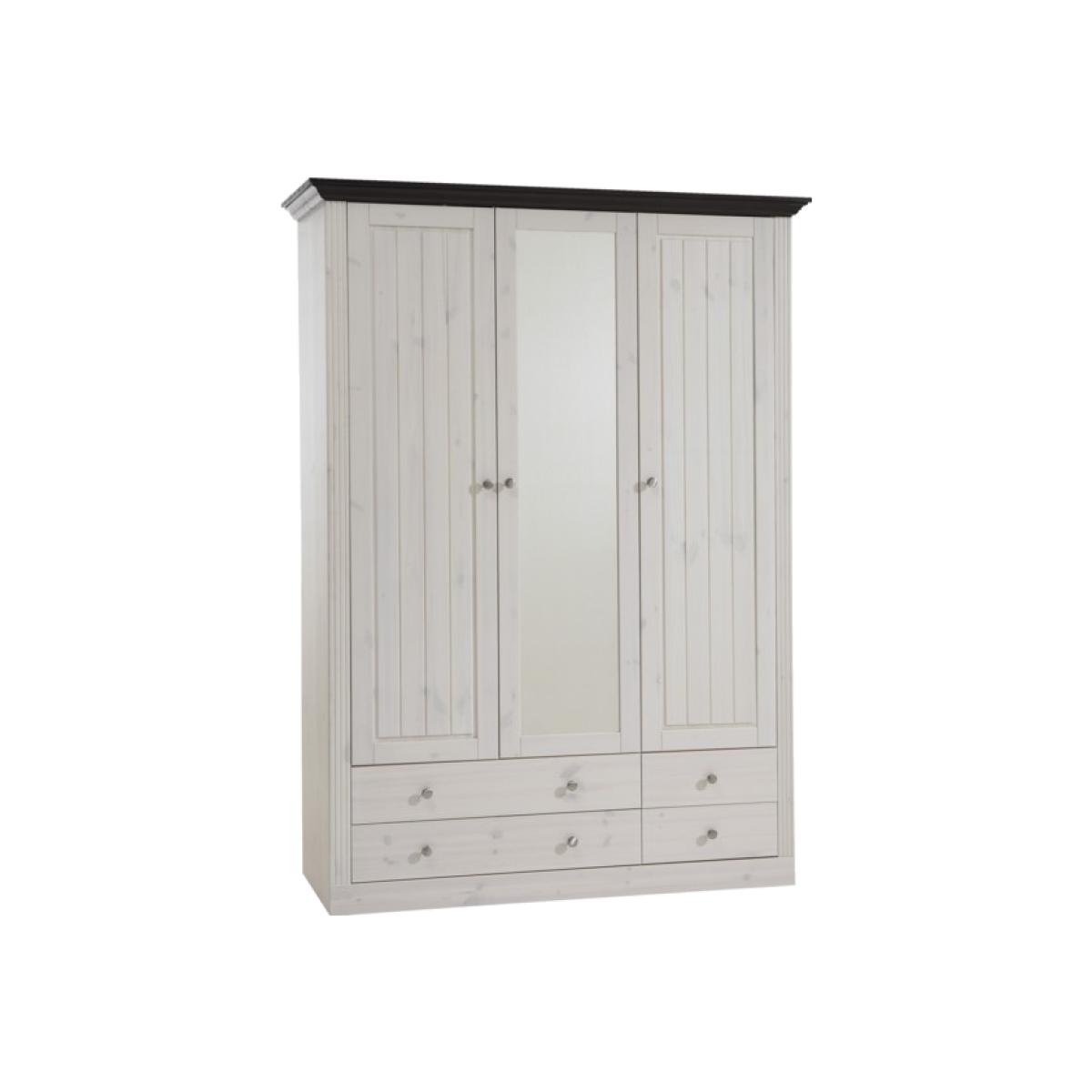 Monaco Mirror and Drawer Wardrobe - White-washed