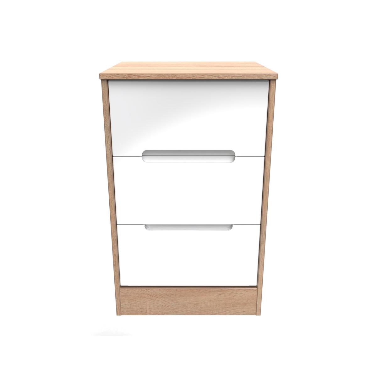 This 3 drawer bedside cabinet is practical and stylish. Perfect for any bedside or as a free standing storage unit. Our Monaco set is a classic example of a fresh, clean design. Sleek indented drawer fronts enhance its minimal modern appearance and it finished in a variety of different colour options, making the Monaco a popular range for young professionals. All our furniture is made in the United Kingdom, to the highest quality. It is delivered direct to your location of choice by one of our two man delivery teams, and come full assembled (although legs may be removed to prevent damage in transit).