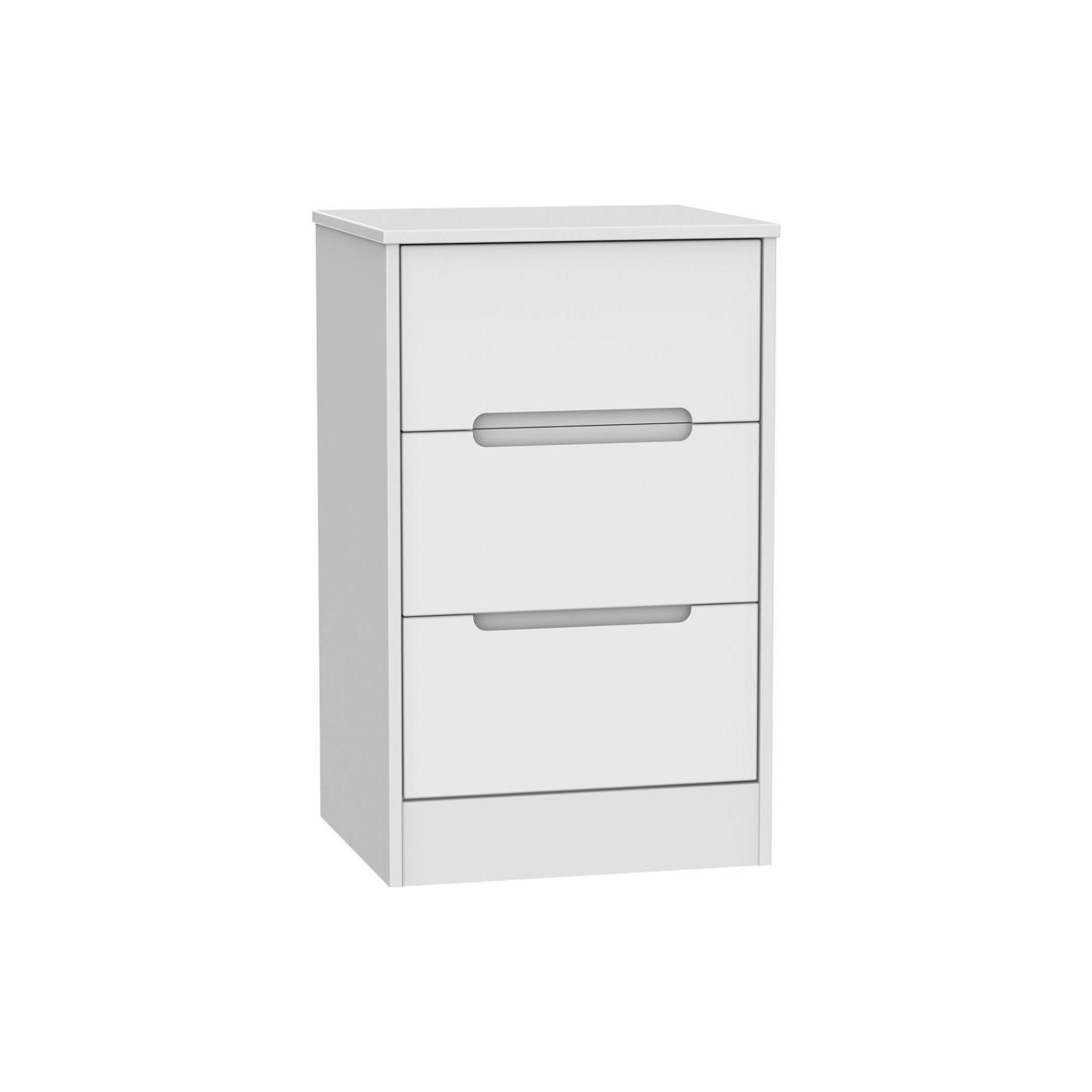 Add a personal touch to your bedroom with the Monaco 3 Drawer Bedside Cabinet. This bedside cabinet features a melamine faced fibre board build and beautiful drawer fronts finished in high gloss. Choose from a selection of base colours and gloss finishes to create a unique piece which will stand out in your bedroom and convey your personal style. Part of the Monaco bedroom furniture range the Monaco 3 Drawer Bedside Cabinet will match all the items in this collection particularly well, or as a single addition to your existing bedroom set-up. This item comes fully assembled, so no cutting or drilling is required and it's ready for use upon delivery. Please note, unfortunately we cannot deliver this item to Northern Ireland and the Channel Islands.